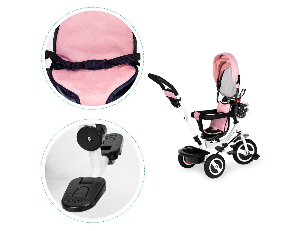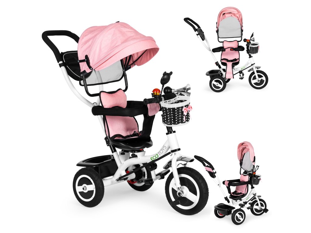Detský trojkolový bicykel ECOTOYS s otočným sedadlom, ružový
