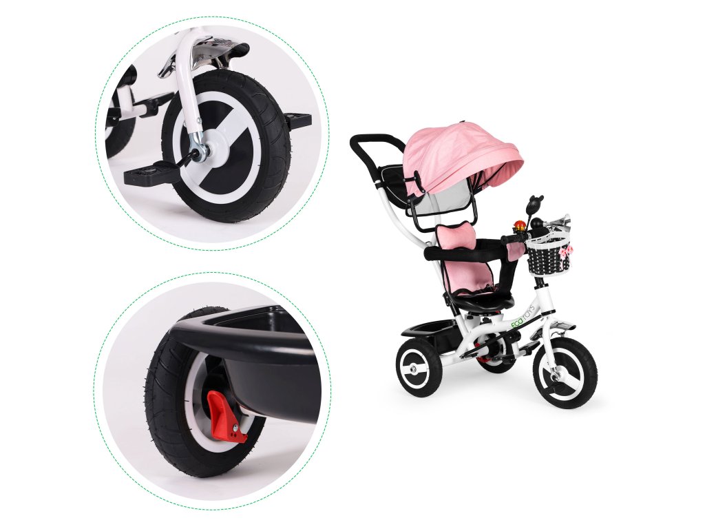 Kolo ECOTOYS kombinuje řadu praktických funkcí, které zajistí, aby vaše dítě pohodlná a bezpečná hra . Kolo má měkké a pohodlné opěradlo která umožňuje batoleti pohodlně sedět a bezpečnostní pásy a ochrana proti pádu ze sedadla. Skládací stříška chrání před deštěm a sluncem . Speciálně tvarovaný rám a otočné sedadlo usnadnit nástup nejmenším dětem.