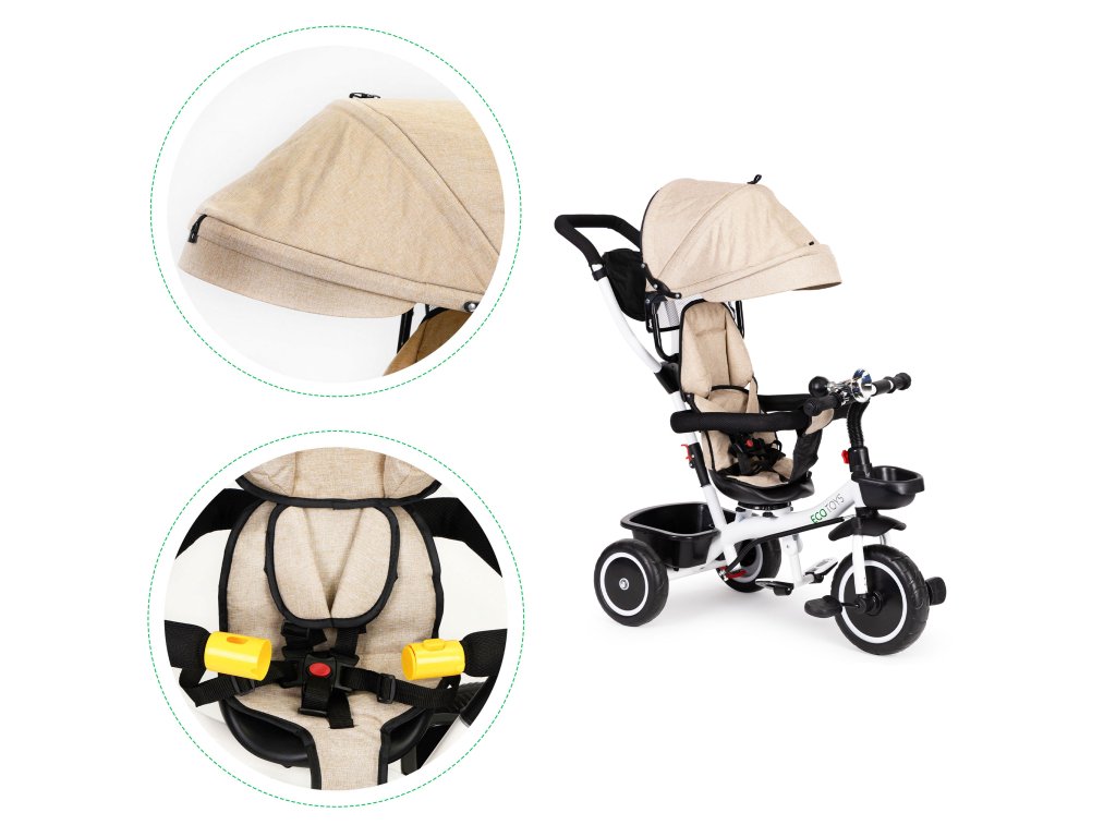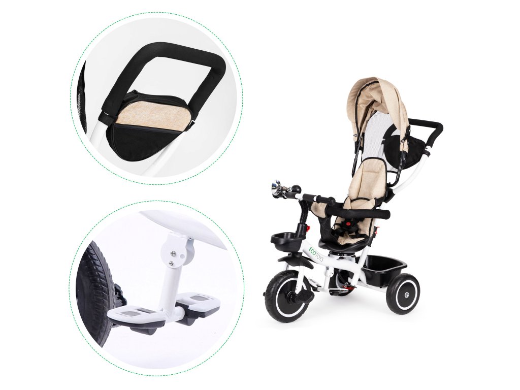 Detský trojkolový kočík ECOTOYS 360° béžový