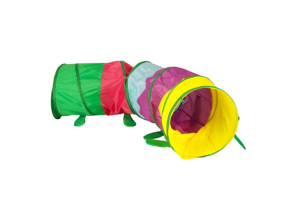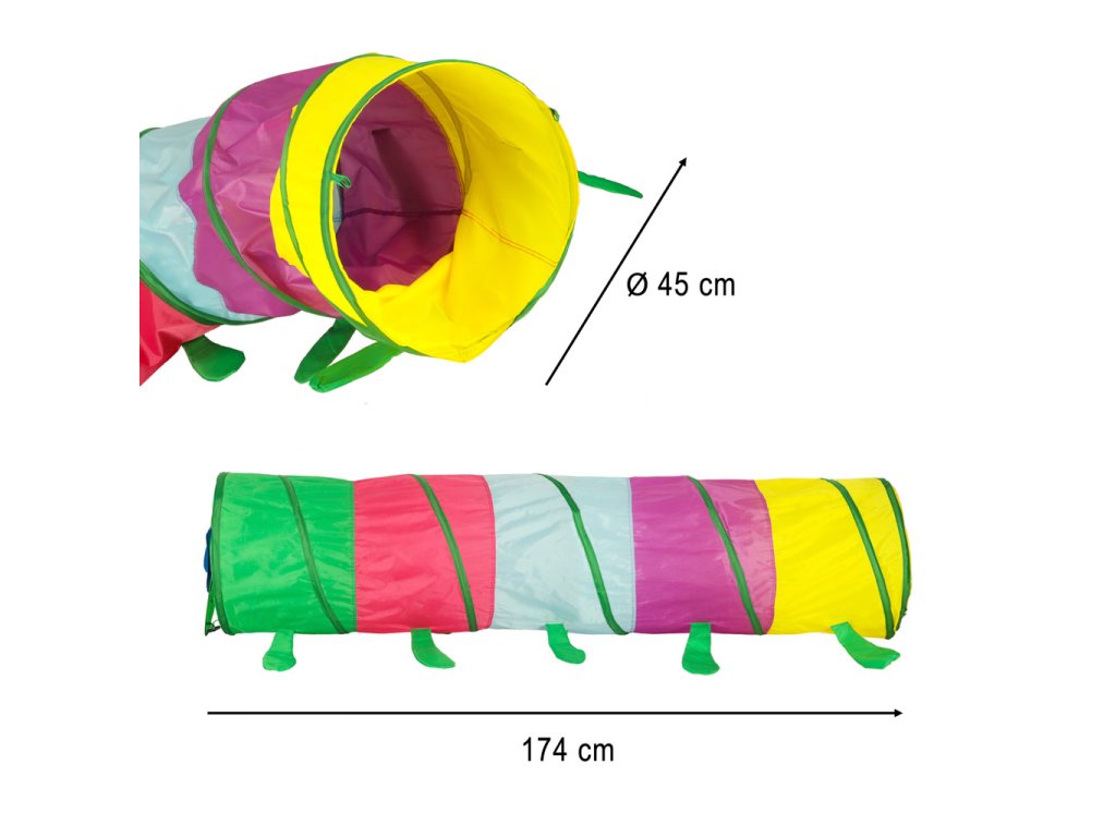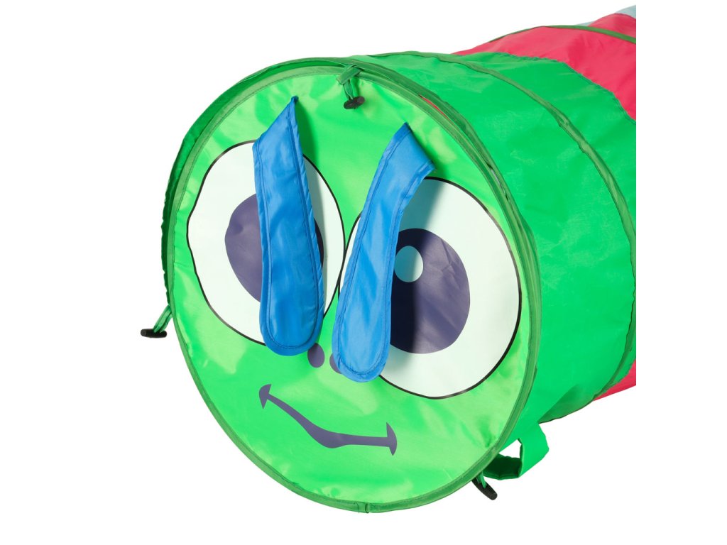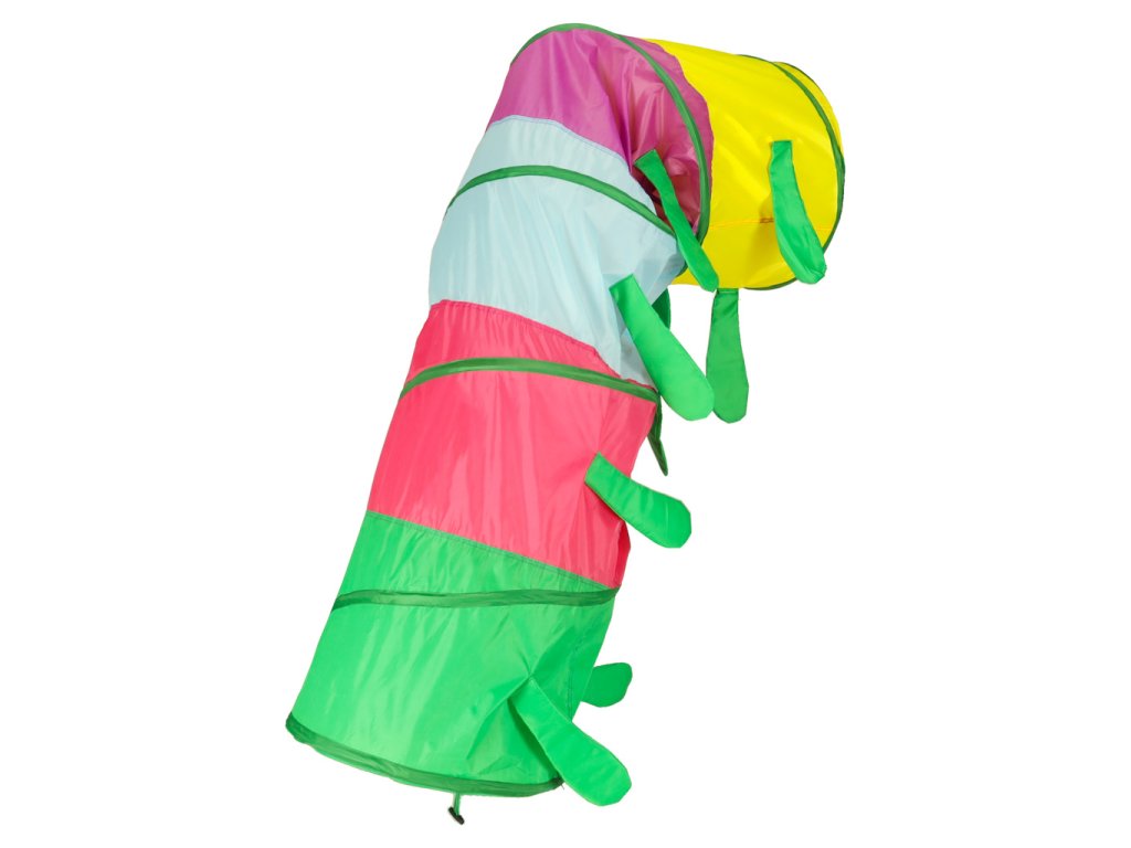 Tunel lze využít mnoha způsoby. K housence můžete připevnit hlavu a ocas nebo nechat průchody otevřené. Důmyslná samoskládací konstrukce a praktické pouzdro na přenášení umožňují tunel rozložit v interiéru i exteriéru.