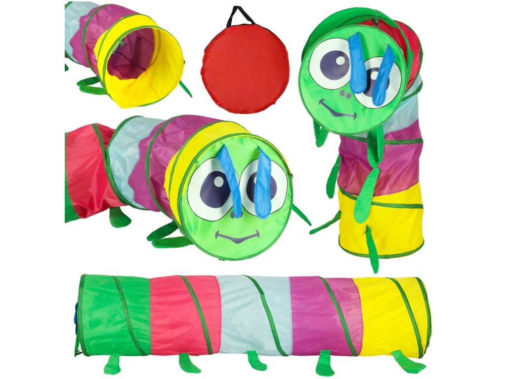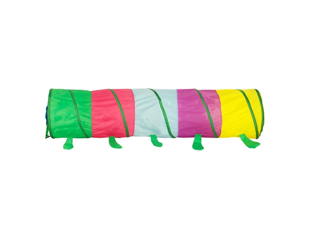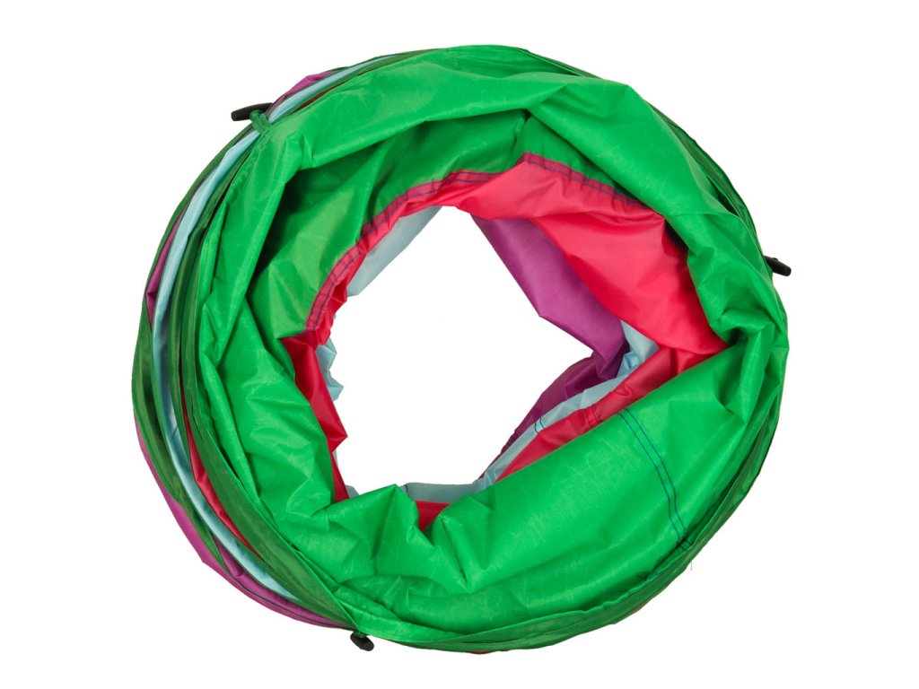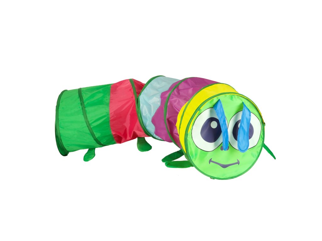 Tunel lze využít mnoha způsoby. K housence můžete připevnit hlavu a ocas nebo nechat průchody otevřené. Důmyslná samoskládací konstrukce a praktické pouzdro na přenášení umožňují tunel rozložit v interiéru i exteriéru.