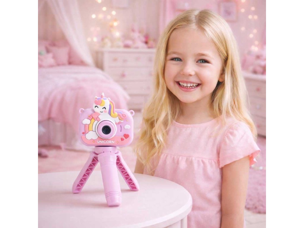 Digitální fotoaparát pro děti na stativu jednorožec fialový
