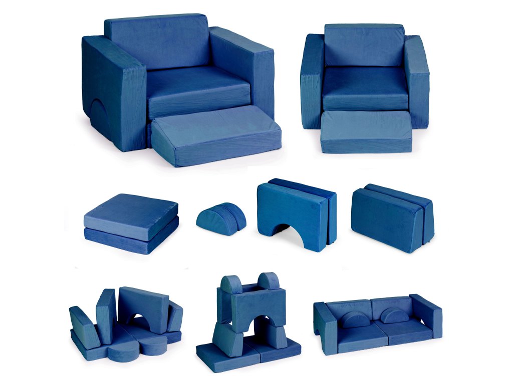 Modulárny dizajn a rôzne tvarované vankúše poskytujú deťom neobmedzené možnosti vytvárania rôznych štruktúr, vaše dieťa si tak môže z pohodlia kresla postaviť dom, hrad alebo vozidlo. Tento druh hry zaručuje skvelú zábavu pre deti, mimochodom rozvíja ich predstavivosť a manuálne zručnosti.