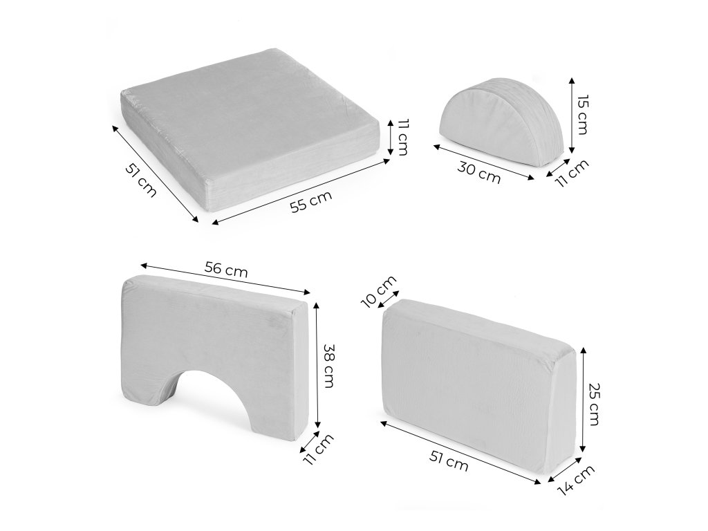 Modulárny dizajn a rôzne tvarované vankúše poskytujú deťom neobmedzené možnosti vytvárania rôznych štruktúr, vaše dieťa si tak môže z pohodlia kresla postaviť dom, hrad alebo vozidlo. Tento druh hry zaručuje skvelú zábavu pre deti, mimochodom rozvíja ich predstavivosť a manuálne zručnosti.