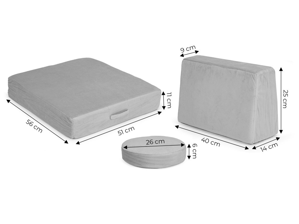 Modulárny dizajn a rôzne tvarované vankúše poskytujú deťom neobmedzené možnosti vytvárania rôznych štruktúr, vaše dieťa si tak môže postaviť dom, hrad alebo vozidlo z pohodlia pohovky. Tento druh hry zaručuje skvelú zábavu pre deti, mimochodom rozvíja ich predstavivosť a manuálne zručnosti.