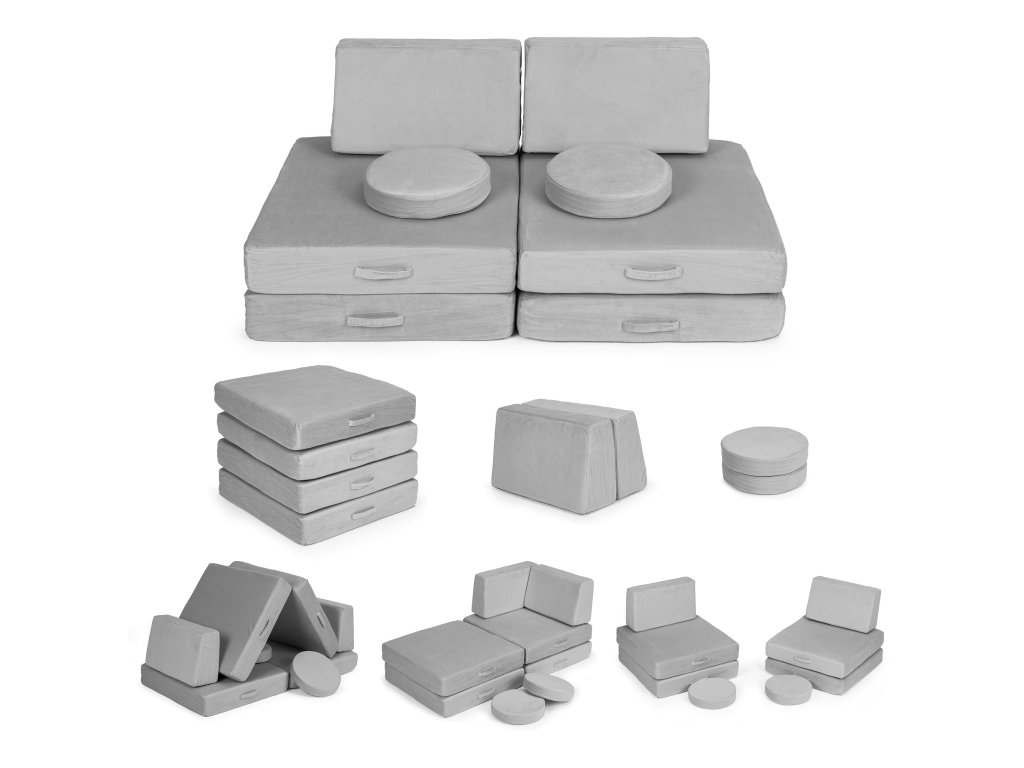 DIY velká skládací modulární pohovka pro děti 8 měkkých polštářů - šedá ECOTOYS