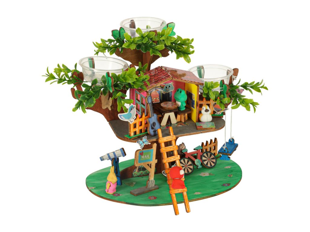 - Rozměry domku na stromě: 23 cm x 18 cm x 22 cm