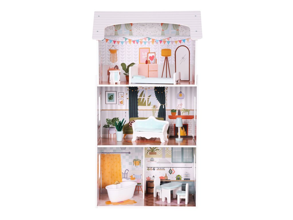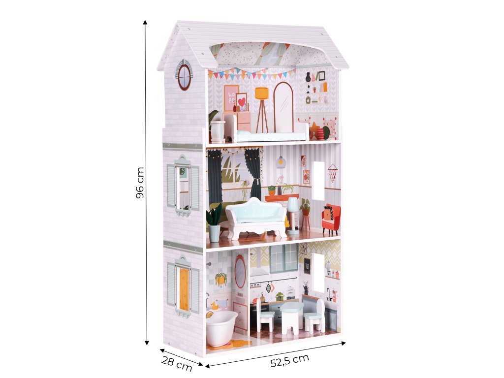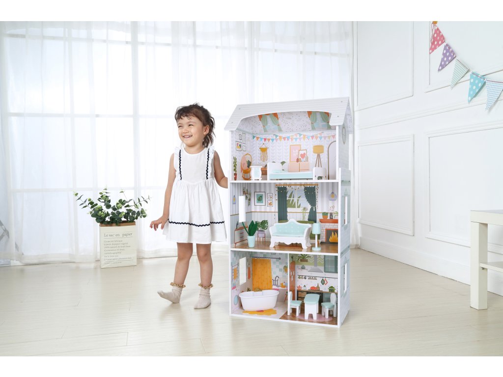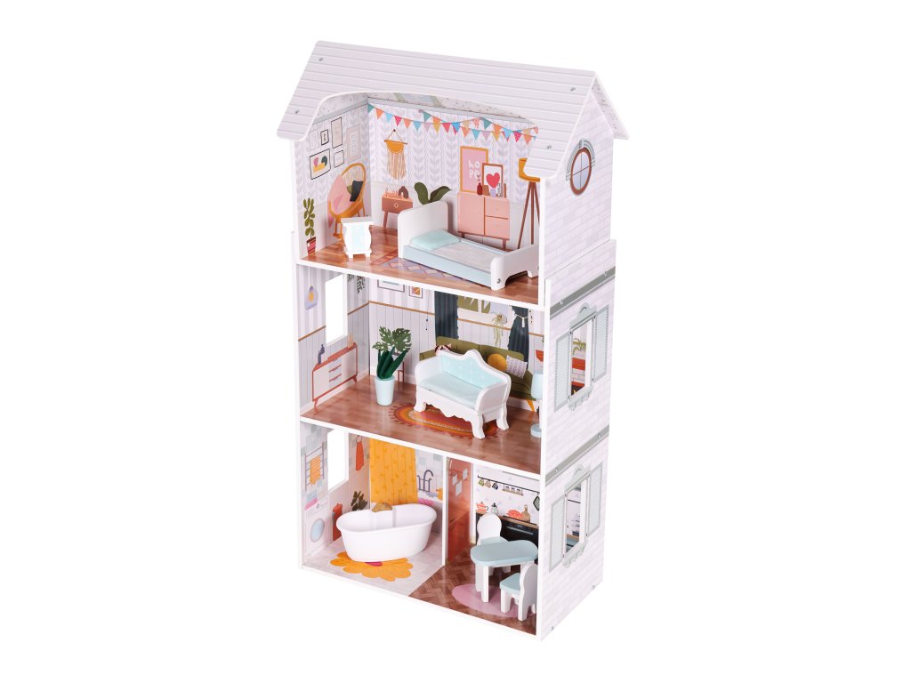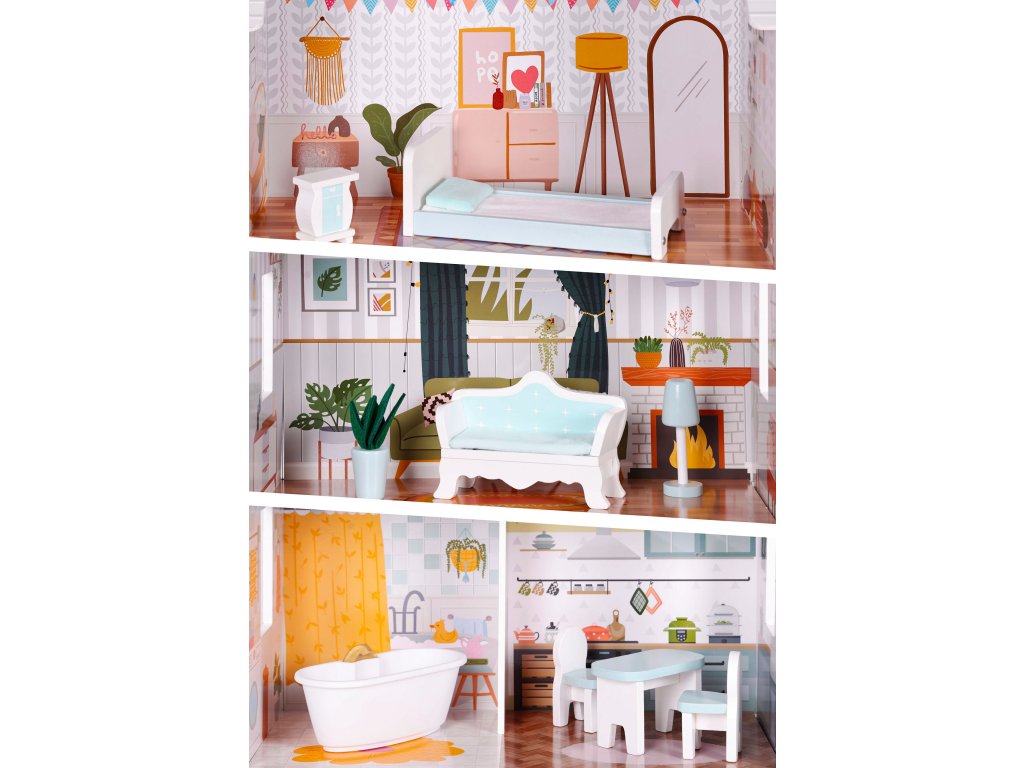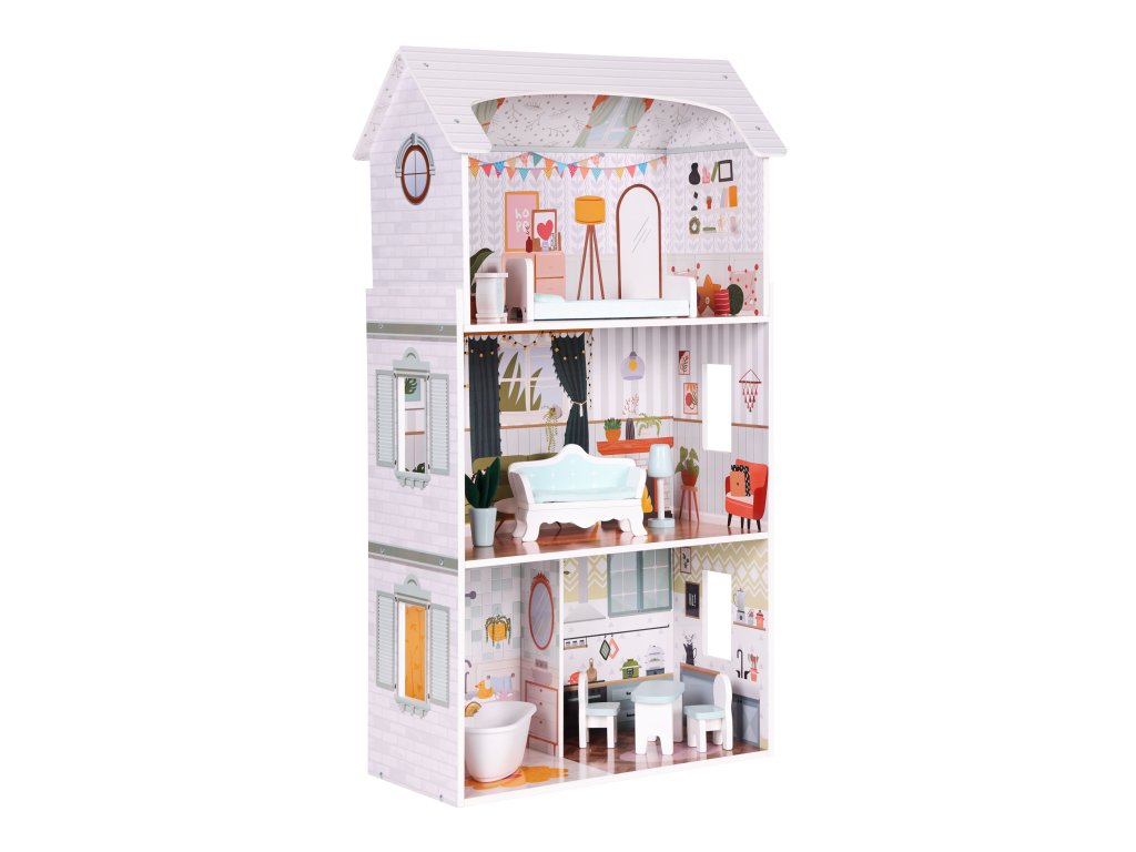 Domeček pro panenky Alice 3 patra 4 pokoje sada 9 kusů nábytku ECOTOYS