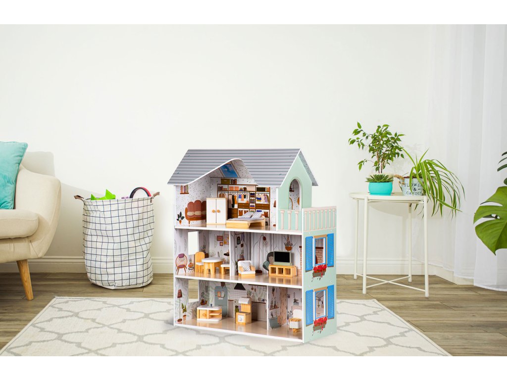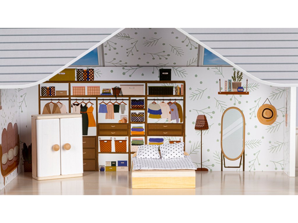 Prostory domeček byl navržen tak, aby byl prostorný a umožňoval volné hraní velkých panenek.