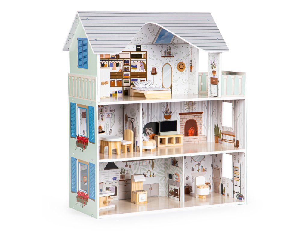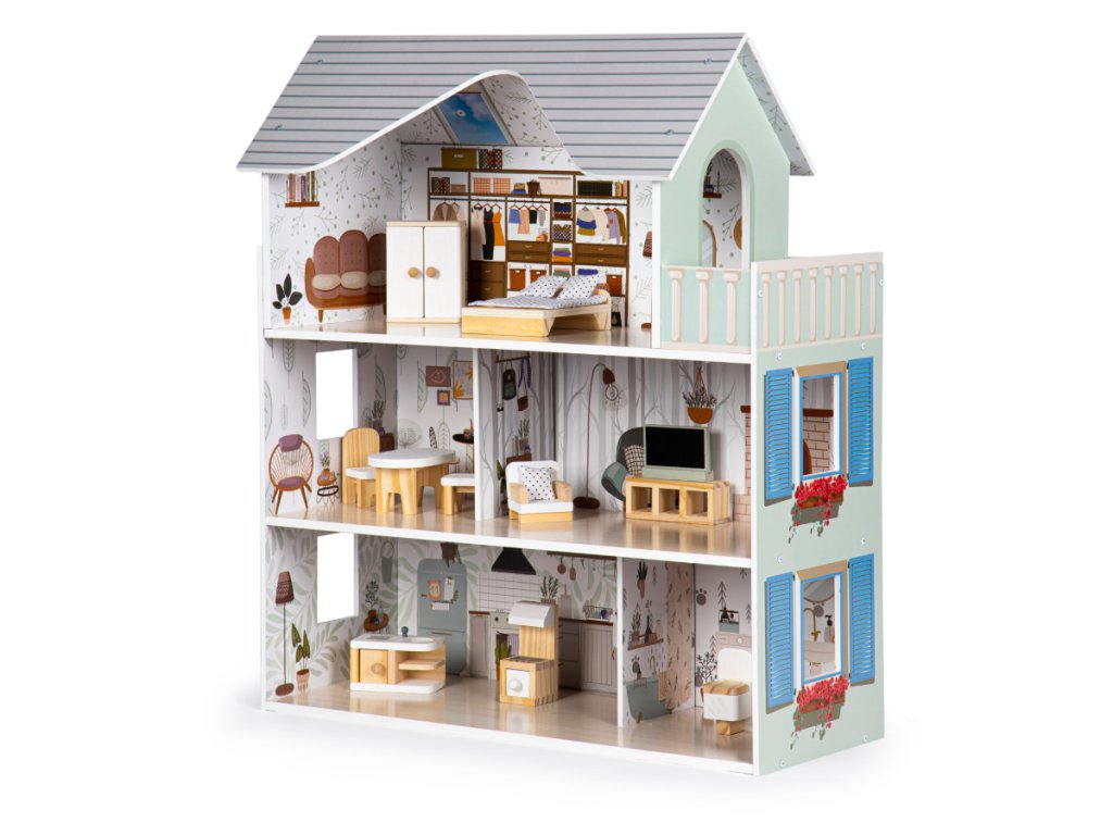 Stačí chvilka hry a dítě si ji zamiluje. Celá chata má 3 samostatná podlaží s celkem 4 pokoji. Každý pokoj je zařízen v jiném stylu, přičemž výzdoba a nábytek odpovídají charakteru a účelu místnosti. Nic však nebrání tomu, aby si vaše dítě zahrálo na designéra interiéru a vytvořilo si ho podle svého.