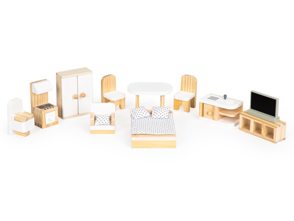 Sada obsahuje také sada 10 kusů dřevěného nábytku a další předměty, jako je vysavač, kytara, zrcadlo nebo přístřešek na řemen. Všechny prvky lze libovolně vyjmout a přemístit bez jakýchkoli omezení.