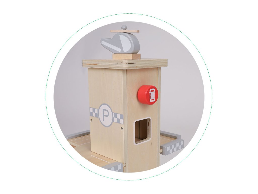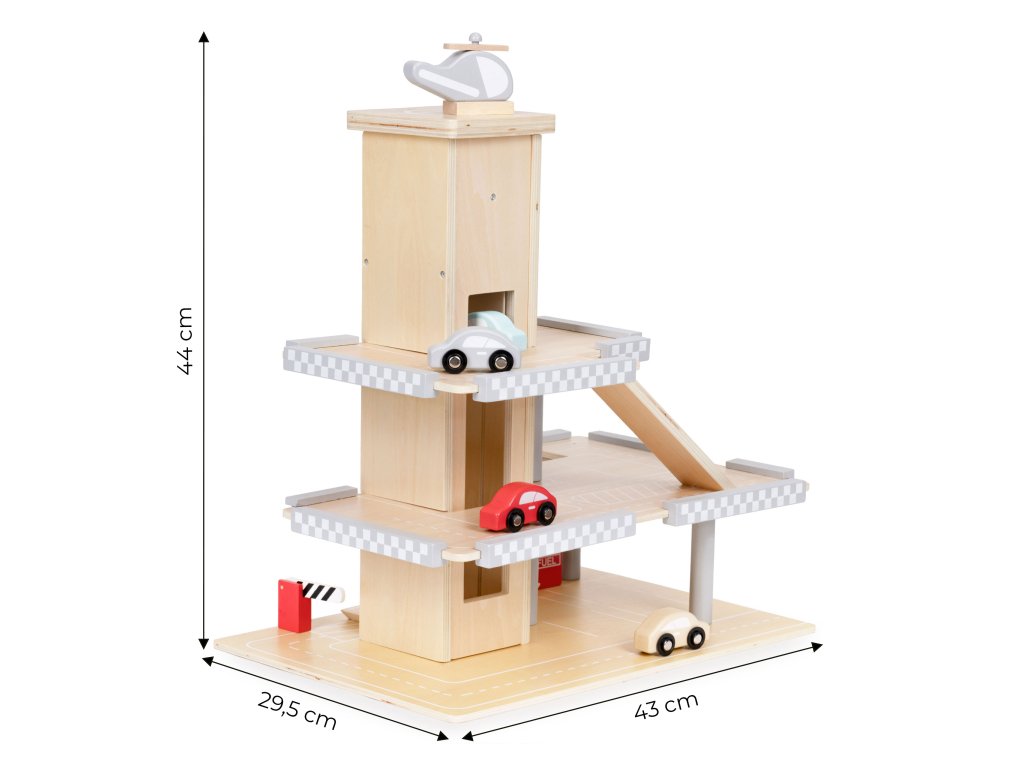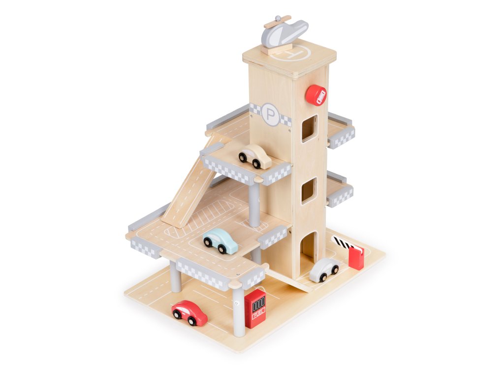 Hračka pro malé milovníky autíček. S patrovou garáží, 4 autíčky a vrtulníkem. Bezpečné a zábavné, s pohyblivou závorou a čerpací stanicí. Úžasná hračka pro dlouhé hodiny zábavy.