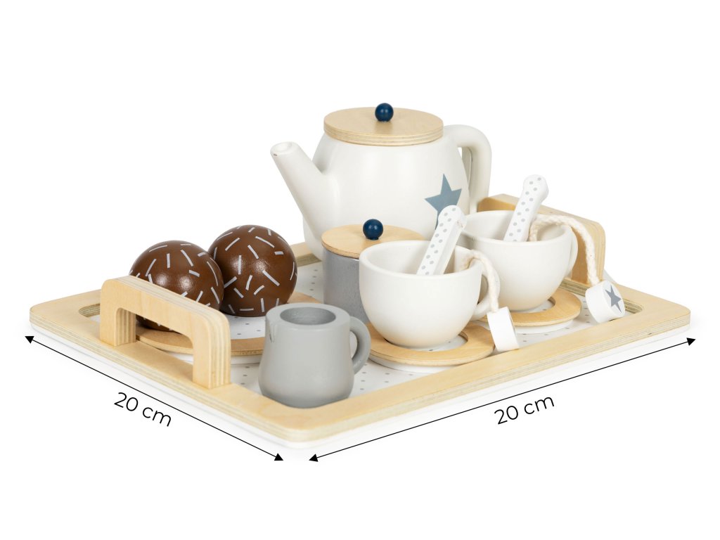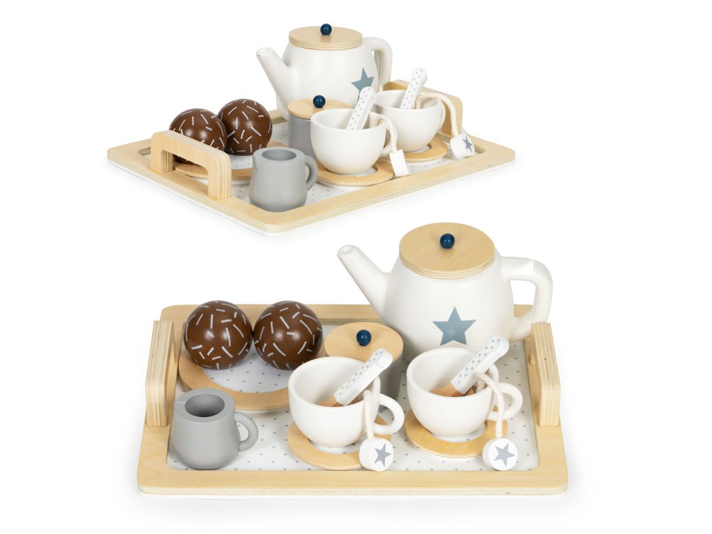 Zažijte kouzelné chvíle u čaje s dřevěnou čajovou soupravou pro děti od 3 let. Sada obsahuje 17 dílků včetně podnosu, talířku, šálků na čaj a dalších. Podporuje kreativitu a učí pravidla stolování. Výrobek značky ECOTOYS s certifikátem CE.
