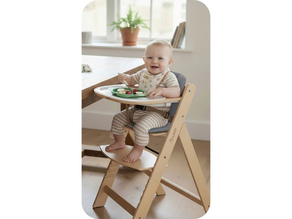 Díky speciální sadě s bezpečnostními popruhy a pohodlným polštářkem se stane bezpečnou a pohodlnou první židličkou pro vaše dítě. Ideální pro první jídla a společné chvíle u stolu.