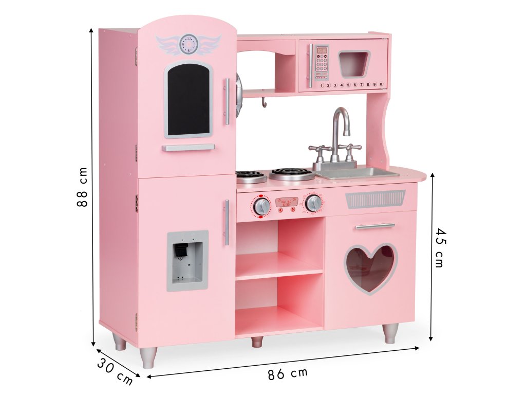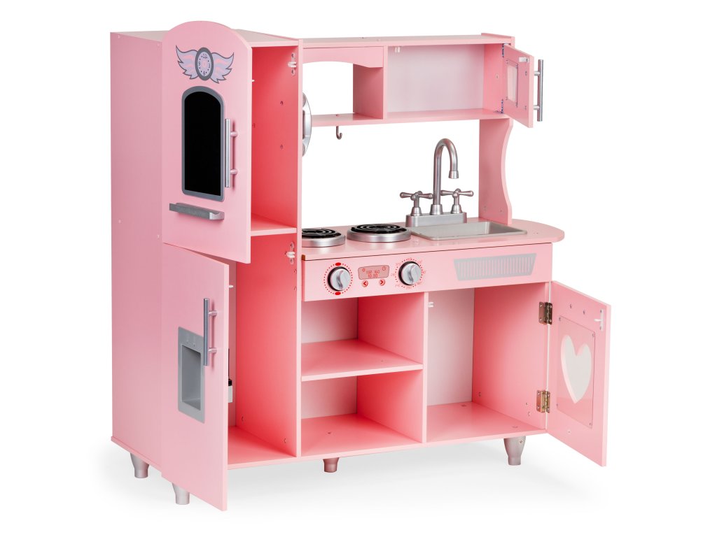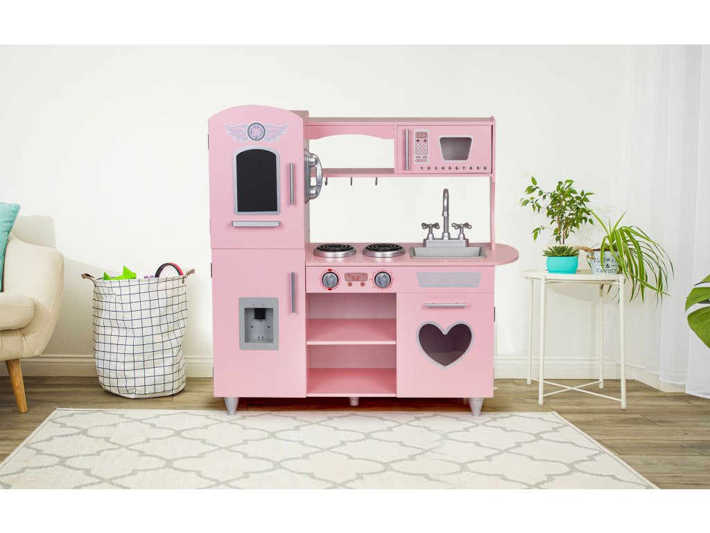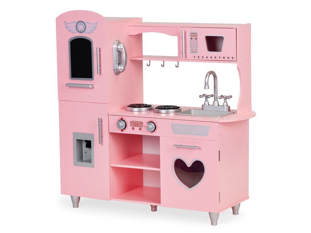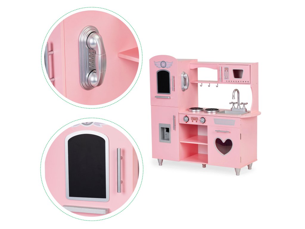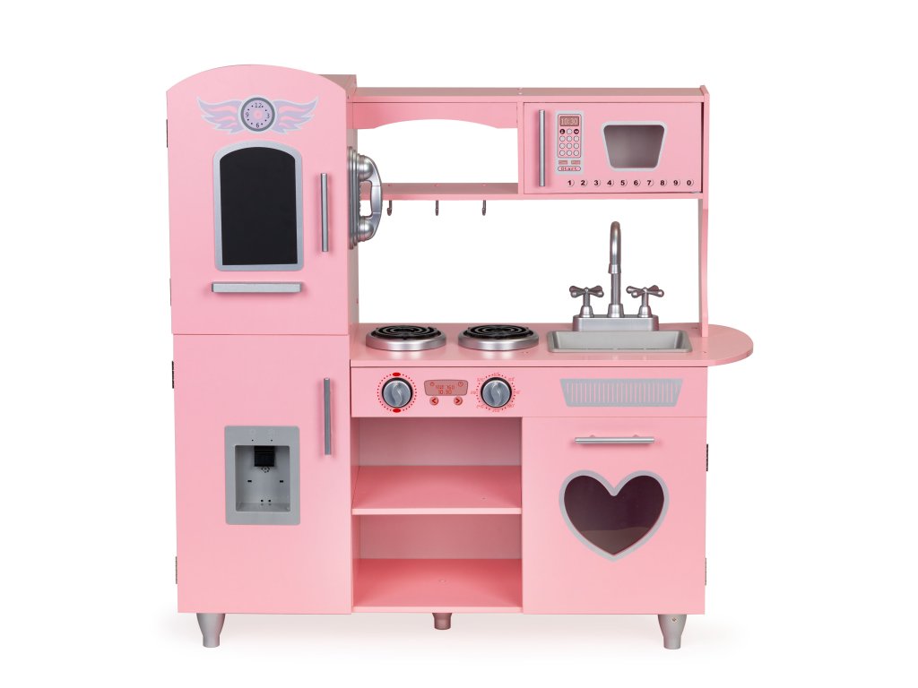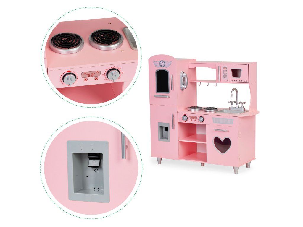 Drevená detská kuchynka Ecotoys ružová s efektnými zvukmi