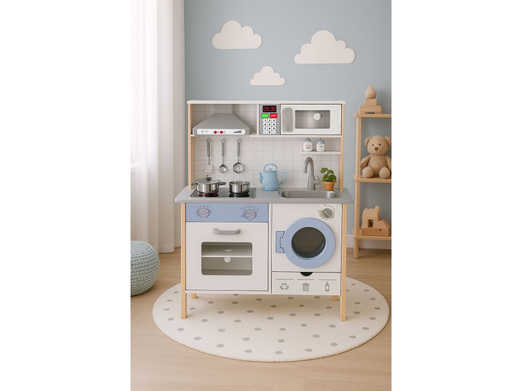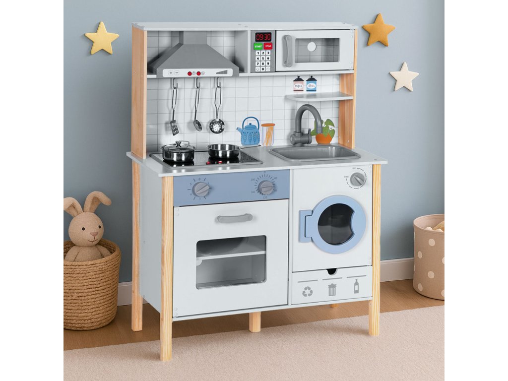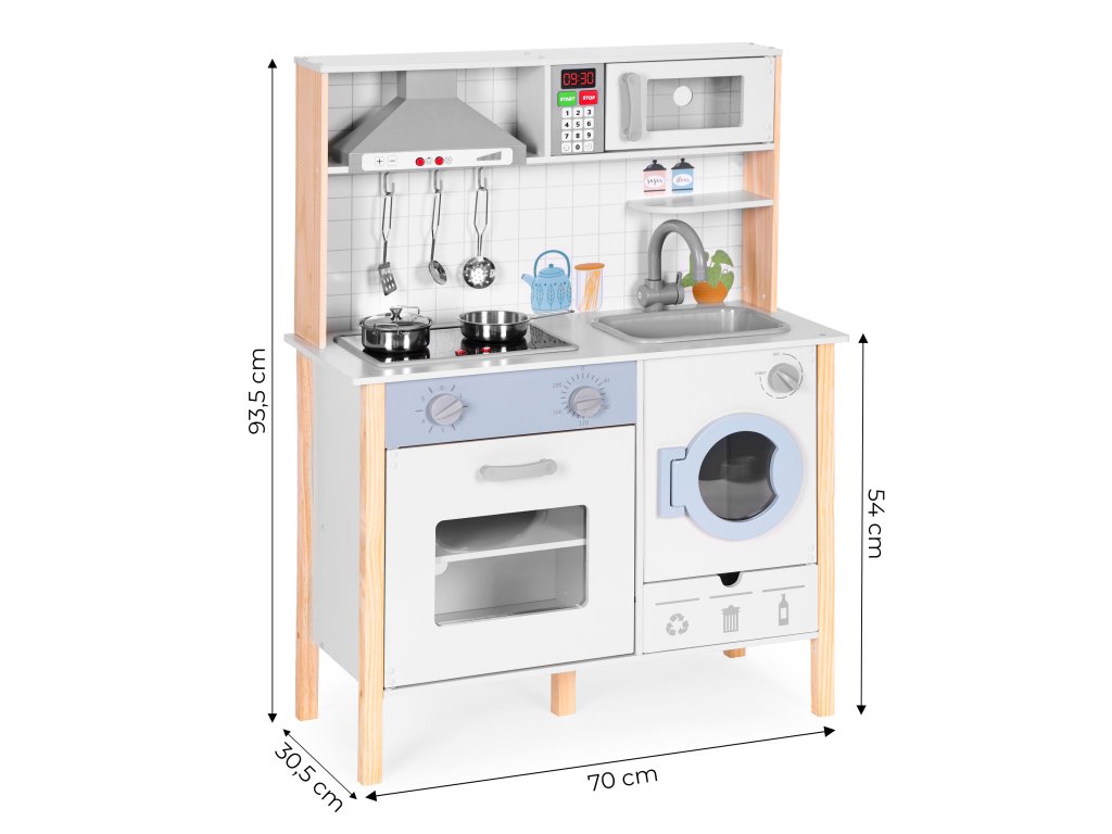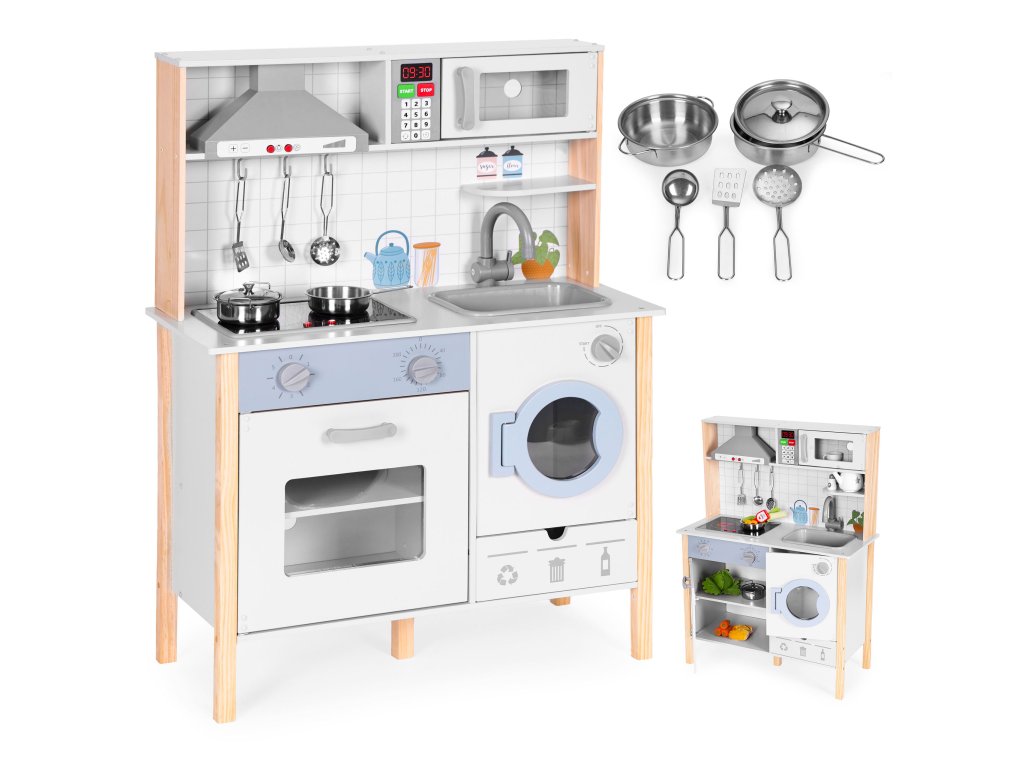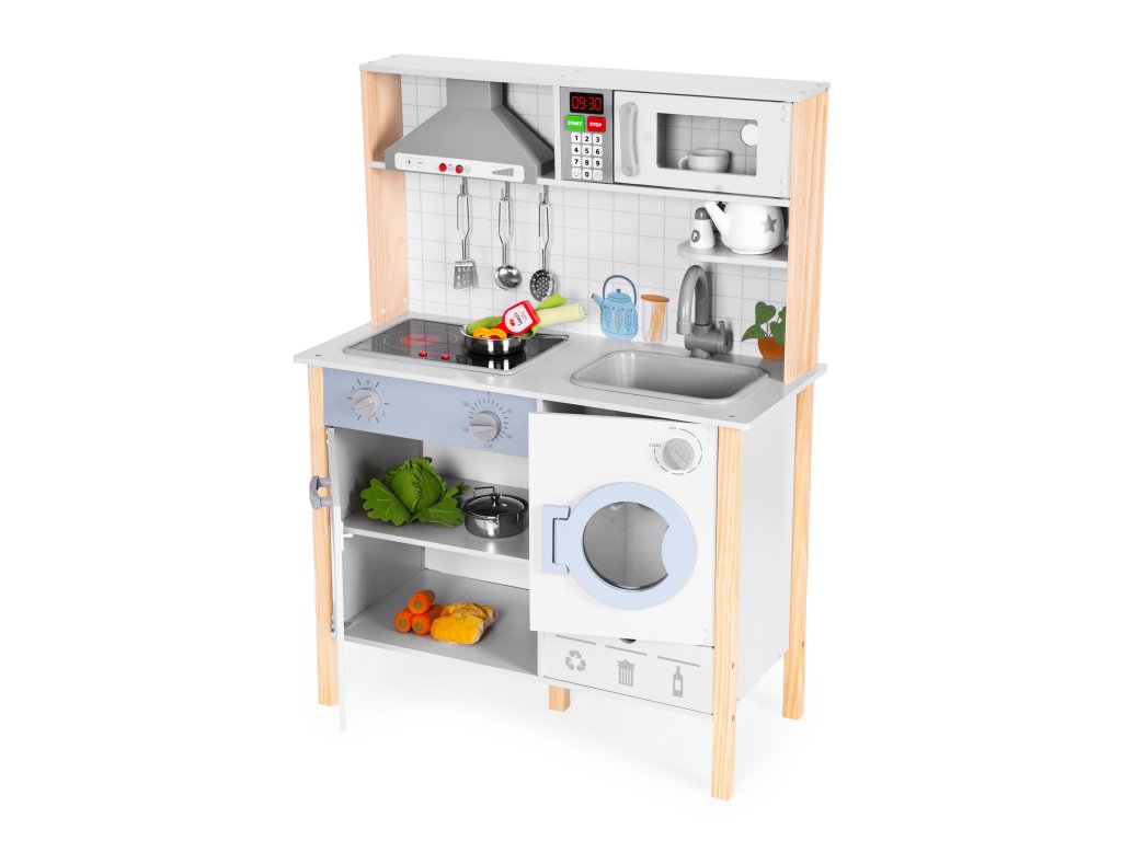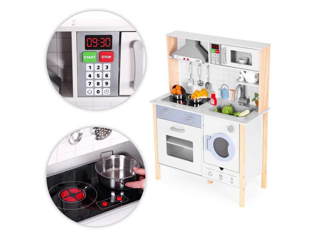 Drevená detská kuchynka ECOTOYS s LED, zvukmi a práčkou