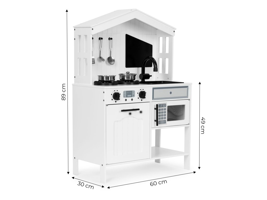 Díky Děti se budou moci cítit jako ve skutečné kuchyni, a zábava při přípravě jídel pro celou rodinu bude nekonečná. Kuchyně je vyrobena z odolných panelů a dřevěných prvků, což mu dodává autentický a jedinečný vzhled, jeho konstrukce nemá žádné ostré hrany, což umožňuje je pro děti bezpečný.