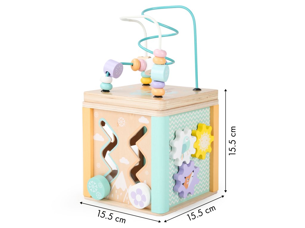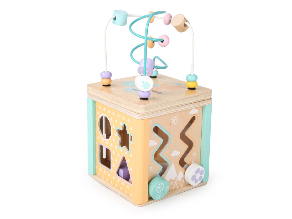 Drevená edukačná kocka s labyrintom a sorterom ECOTOYS