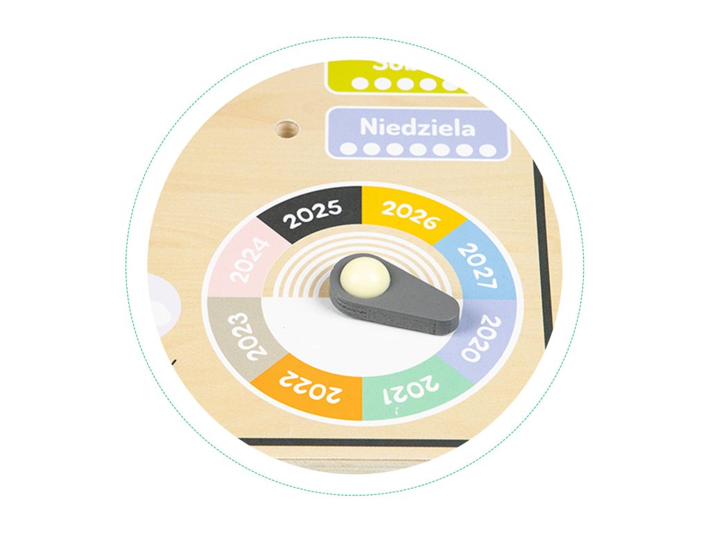Tabule umožní batolatům poznat dny v týdnu, měsíce, roční období a naučí je správně číst čas. Kromě učení přináší hračka spoustu zábavy a rozvíjí manuální dovednosti dítěte.