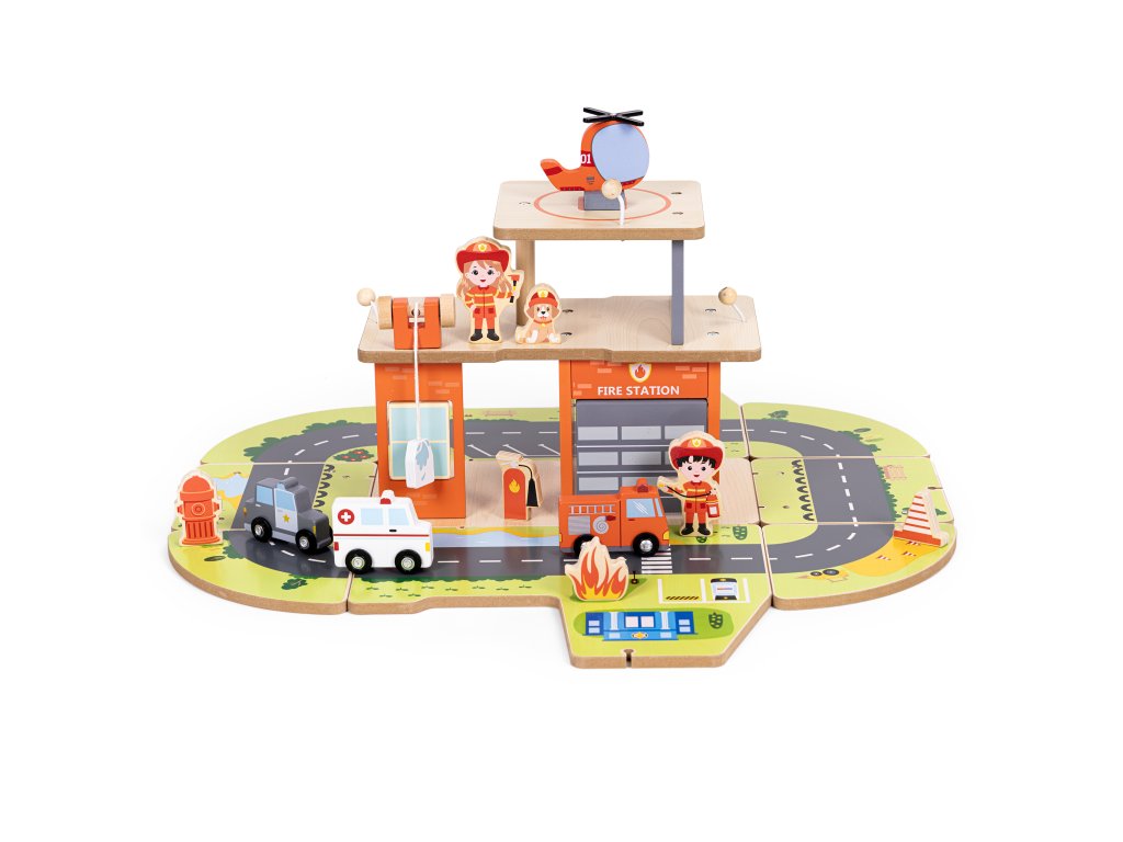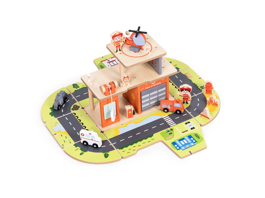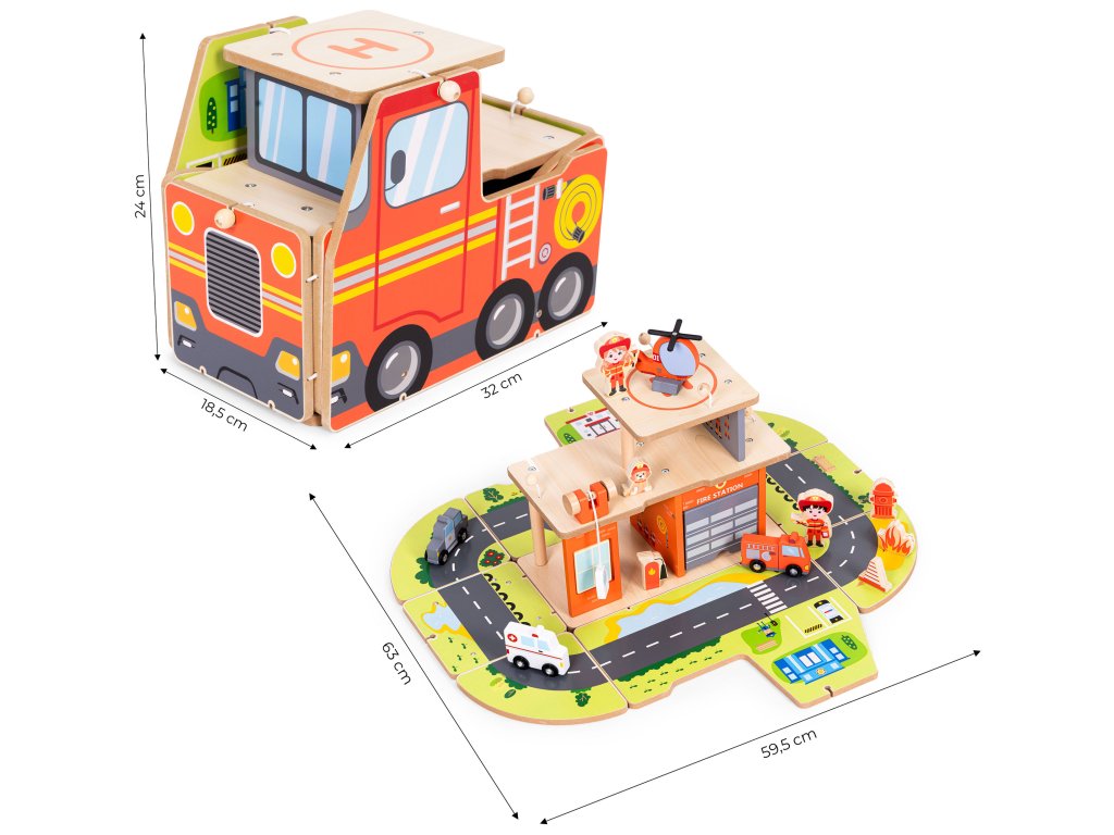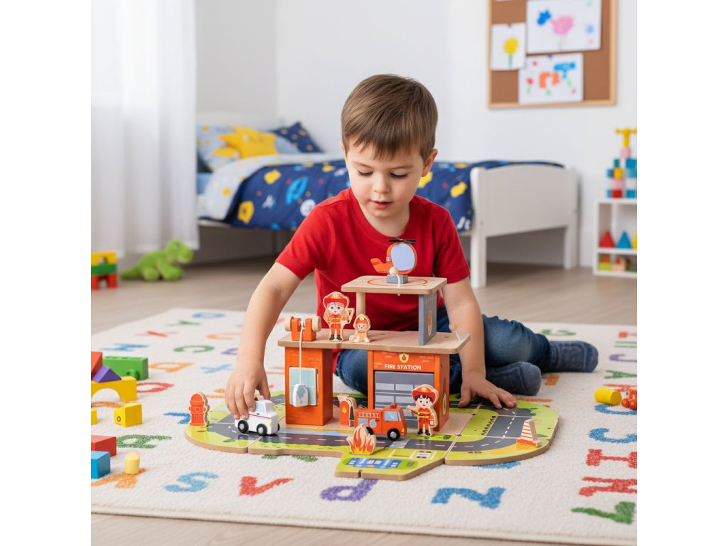 Dřevěná hasičská stanice 2 v 1 je ideální hračkou, která podněcuje představivost a podporuje učení hrou. Děti mohou hrát roli hasičů, plánovat záchranné operace aby se postaral o bezpečnost města. Díky široké škále doplňků - od vrtulníku po hydrant, plameny nebo výstražné značky - si batolata mohou vytvářet vlastní scénáře, a zároveň se učí logicky myslet a spolupracovat. Hračka se dobře uplatní doma nebo ve školce, protože poskytuje vynikající podporu pro emocionální a sociální rozvoj. Je to víc než jen jednoduchá hračka - je to je velitelské centrum malého hrdiny, která stimuluje kreativitu a poskytuje dlouhé hodiny poutavé zábavy vzdělávání.
