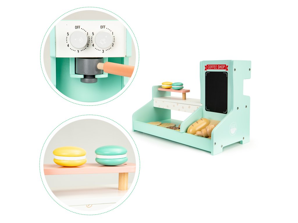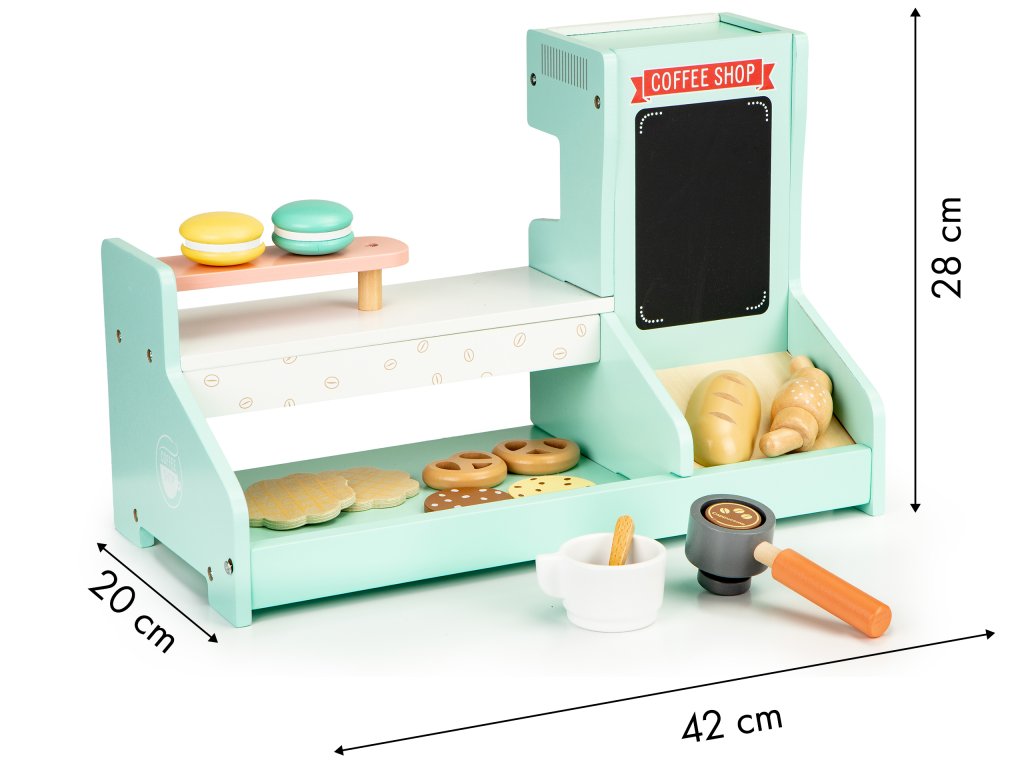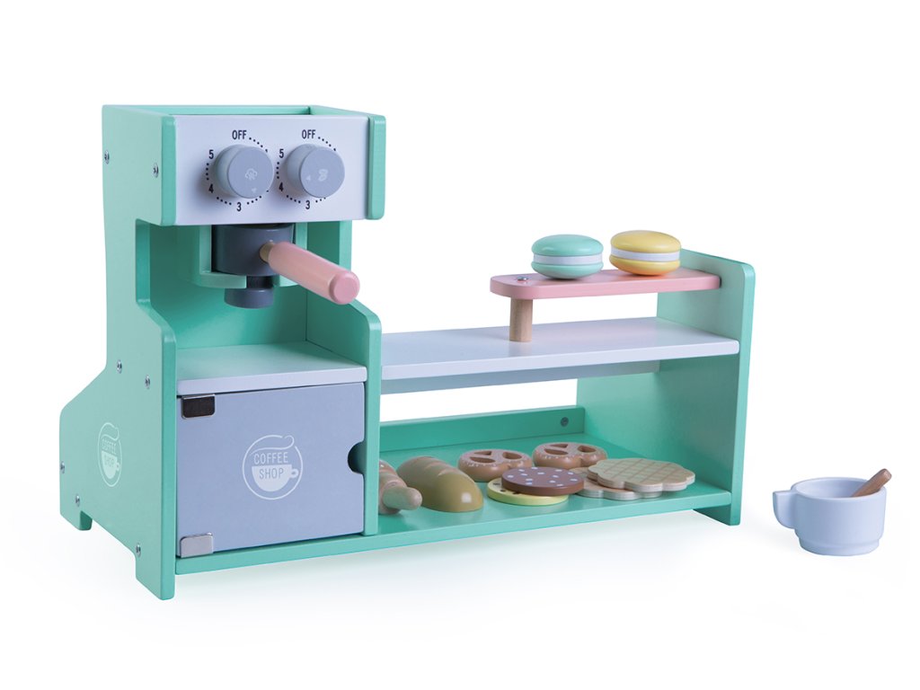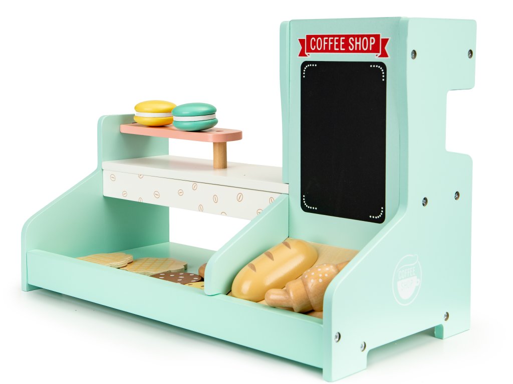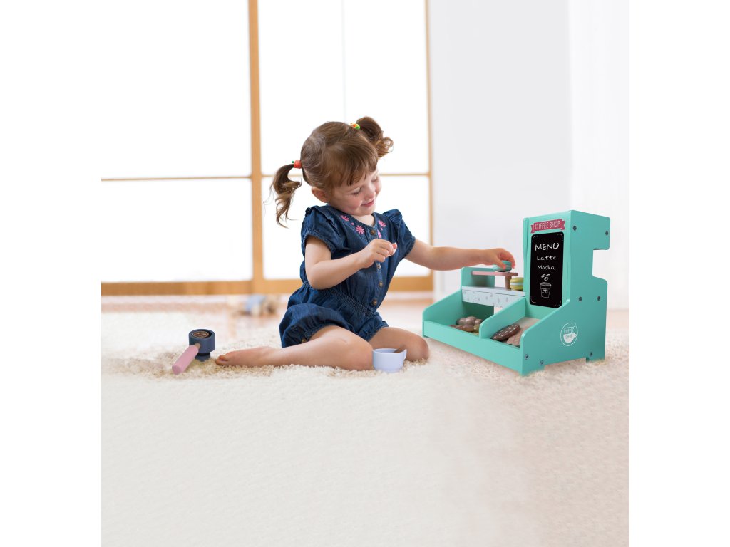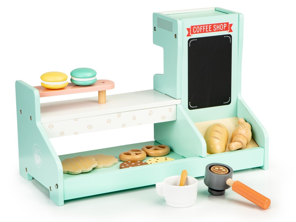 Kreativita batolat nezná mezí. Dřevěná kavárna umožňuje dítěti ztělesnit v roli baristy/prodavače lahůdek díky kterému se naučíte provoz kávovaru a pojmenování oblíbených dortů. Hračky mohou hrát dvě osoby jeden v roli kupujícího a druhý v roli pokladníka.