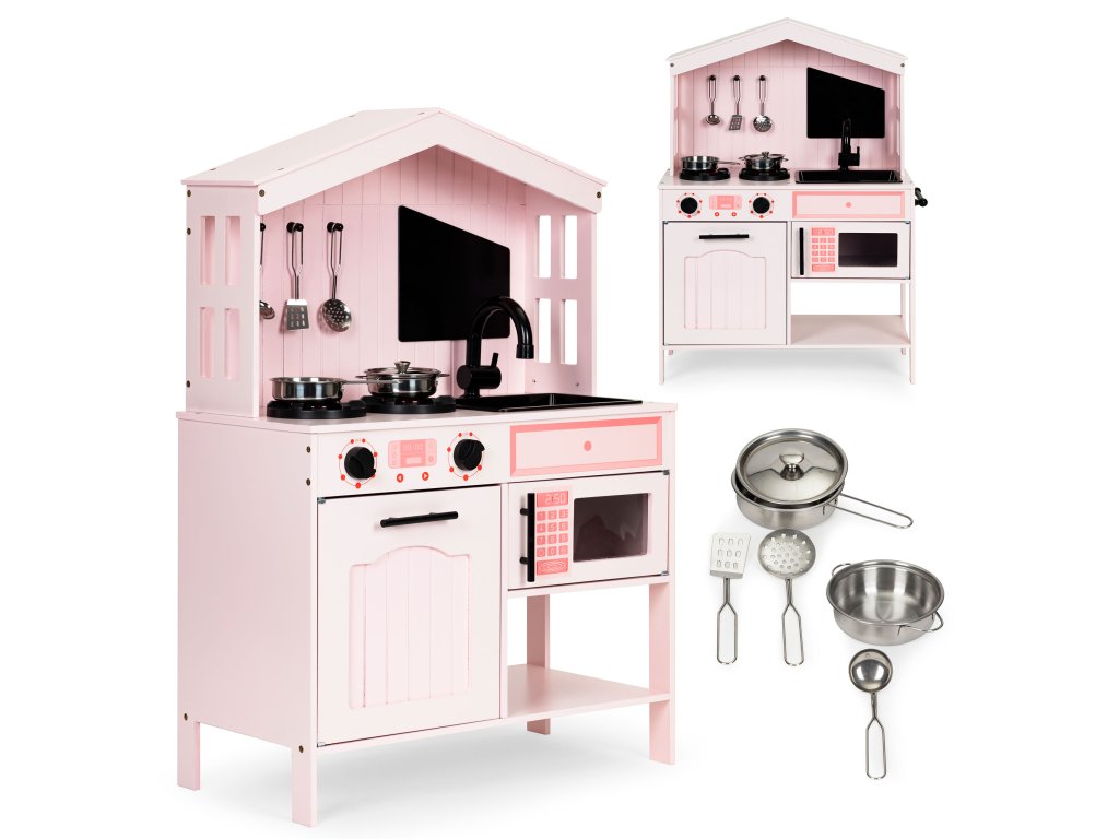 Díky Děti se budou moci cítit jako ve skutečné kuchyni, a zábava při přípravě jídel pro celou rodinu bude nekonečná. Kuchyně je vyrobena z odolných panelů a dřevěných prvků, což mu dodává autentický a jedinečný vzhled, jeho konstrukce nemá žádné ostré hrany, což umožňuje je pro děti bezpečný.