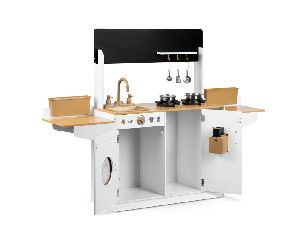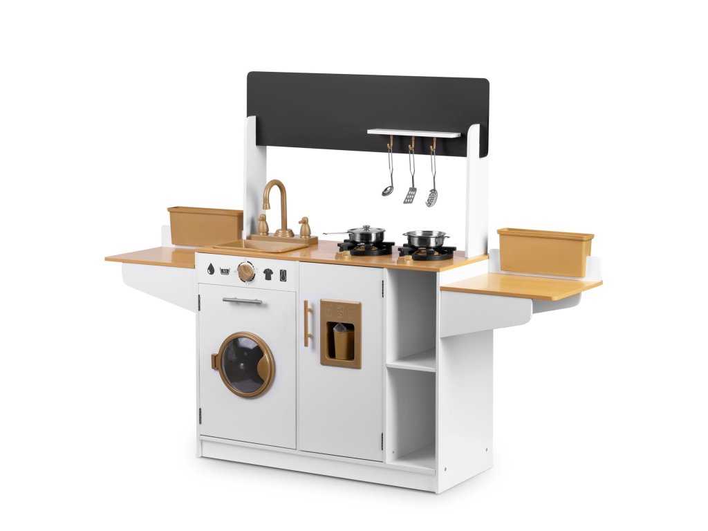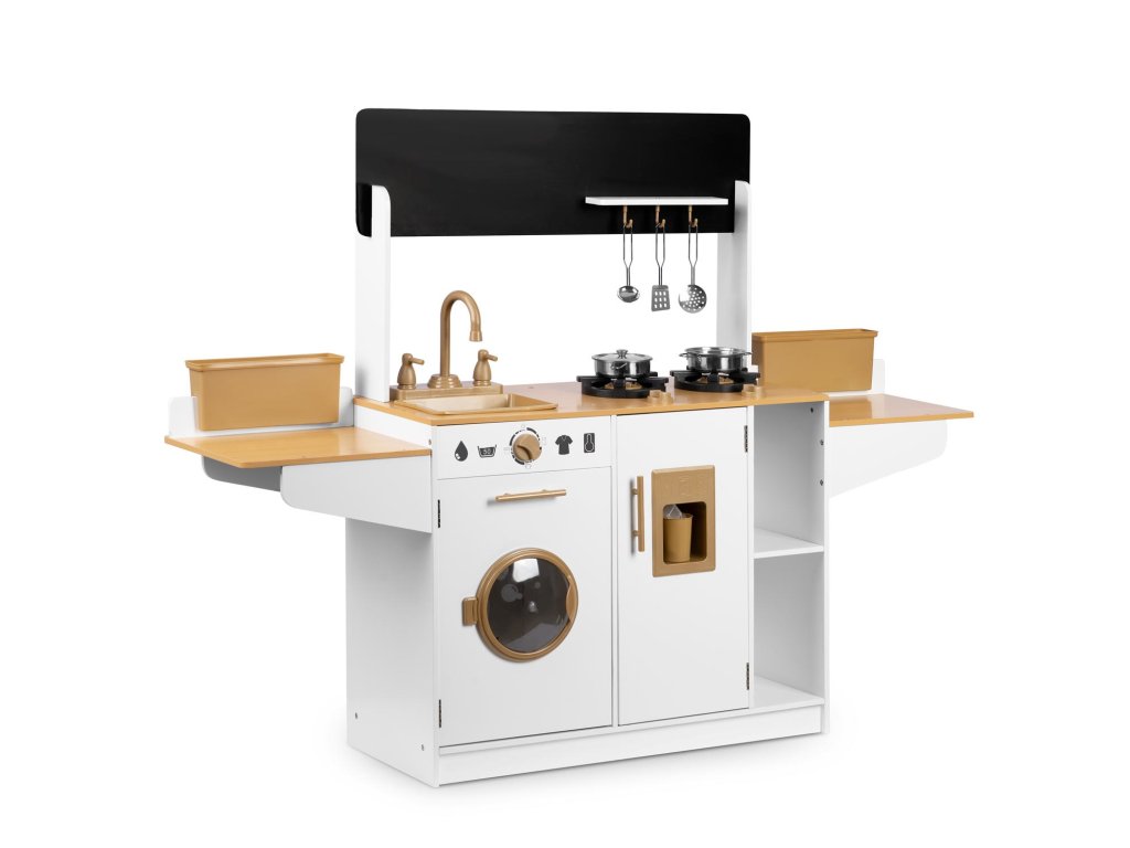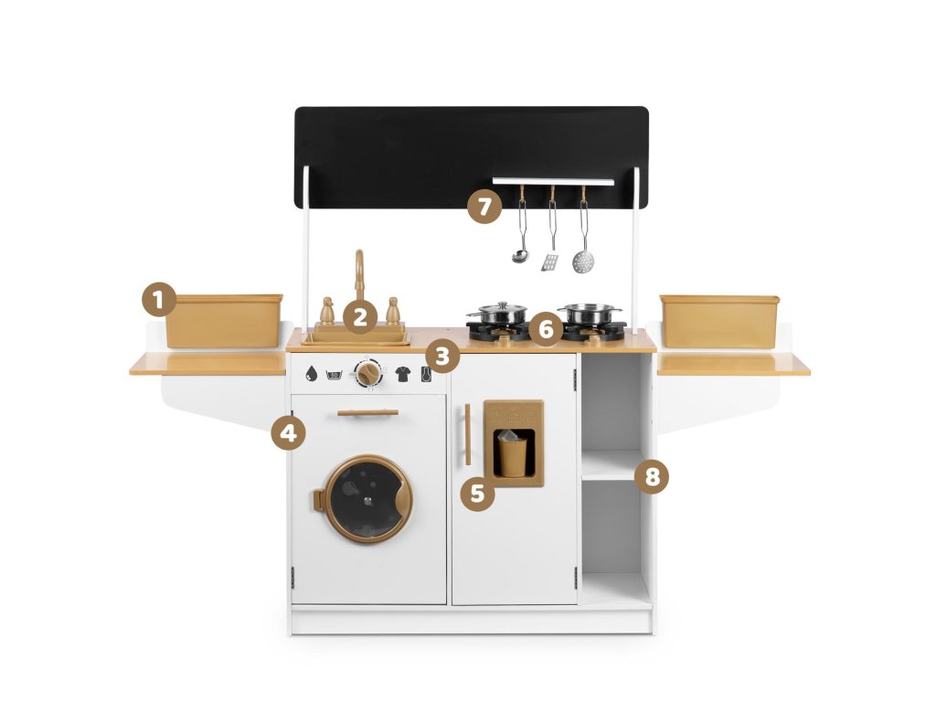 Ricokids Kitchen je vzdělávací hračka, díky které se vaše dítě bude cítit jakojako ve skutečné kuchyni. Díky otevíracím dvířkům, otočným knoflíkům a nádobí, které vypadá jako skutečné, se vaše dítě při hře skvěle zabavírozvoj manuálních dovedností.