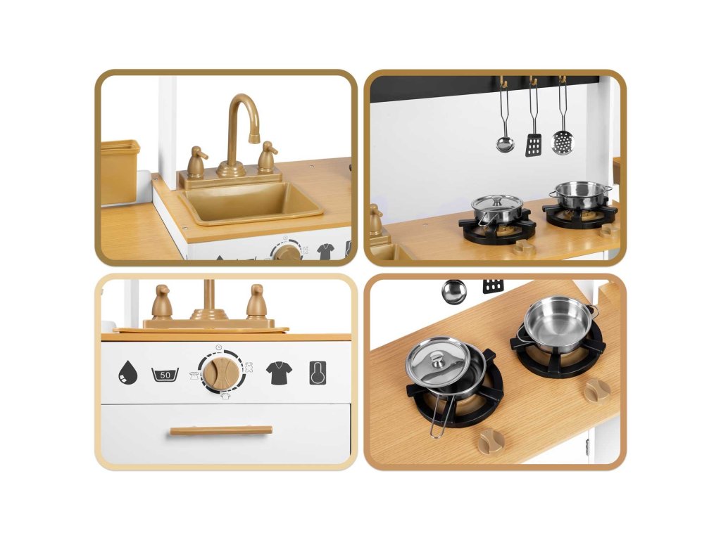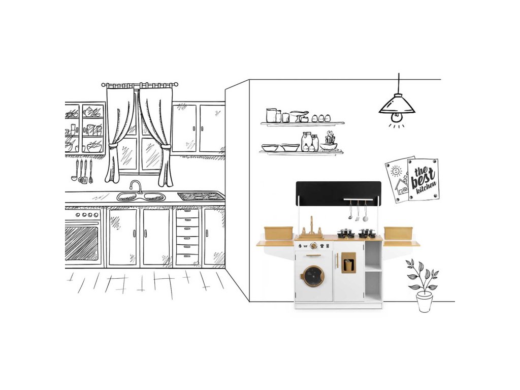 Tato kuchyně je snem každého dítěte. Otevírací dvířka, pohyblivé knoflíky a skutečné doplňky vám poskytnou hodiny zábavy.