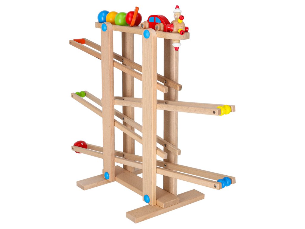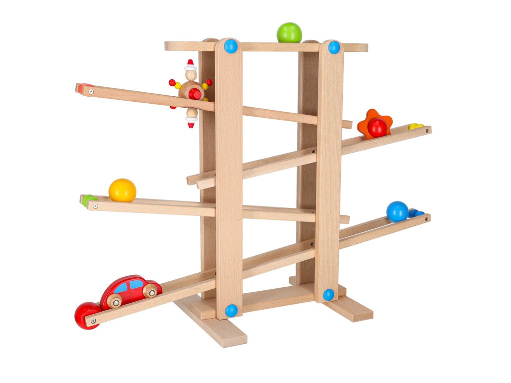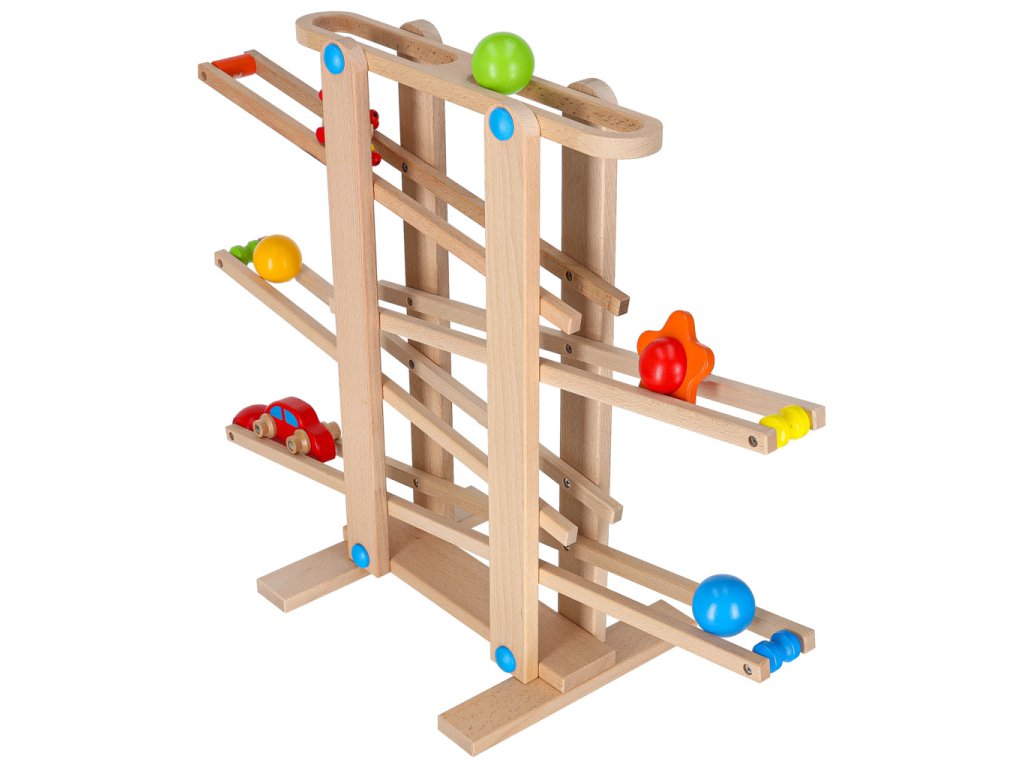 Tato fantastická dřevěná horská dráha s kuličkami a autíčky potěší každý malý průzkumník .