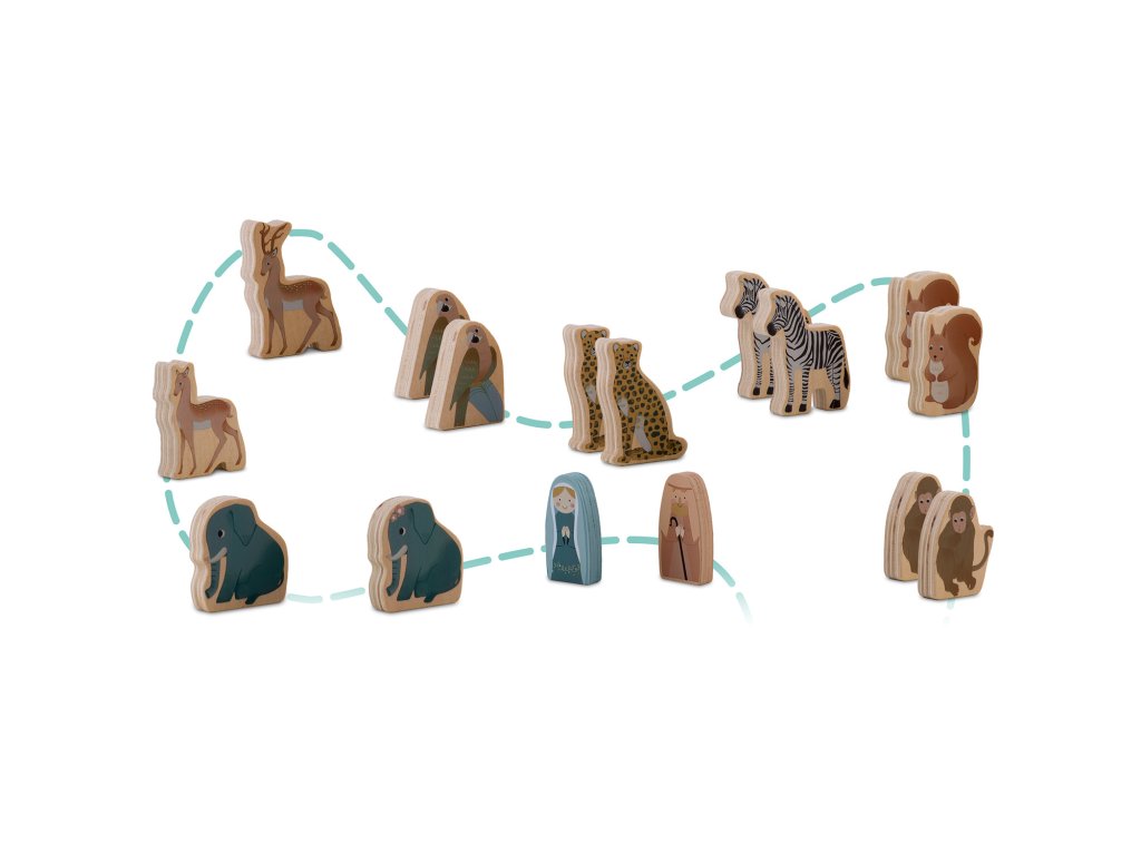Pod palubou jsou dřevěné figurky zvířat, které si děti mohou vybrat a umístit na "palubu" archy.