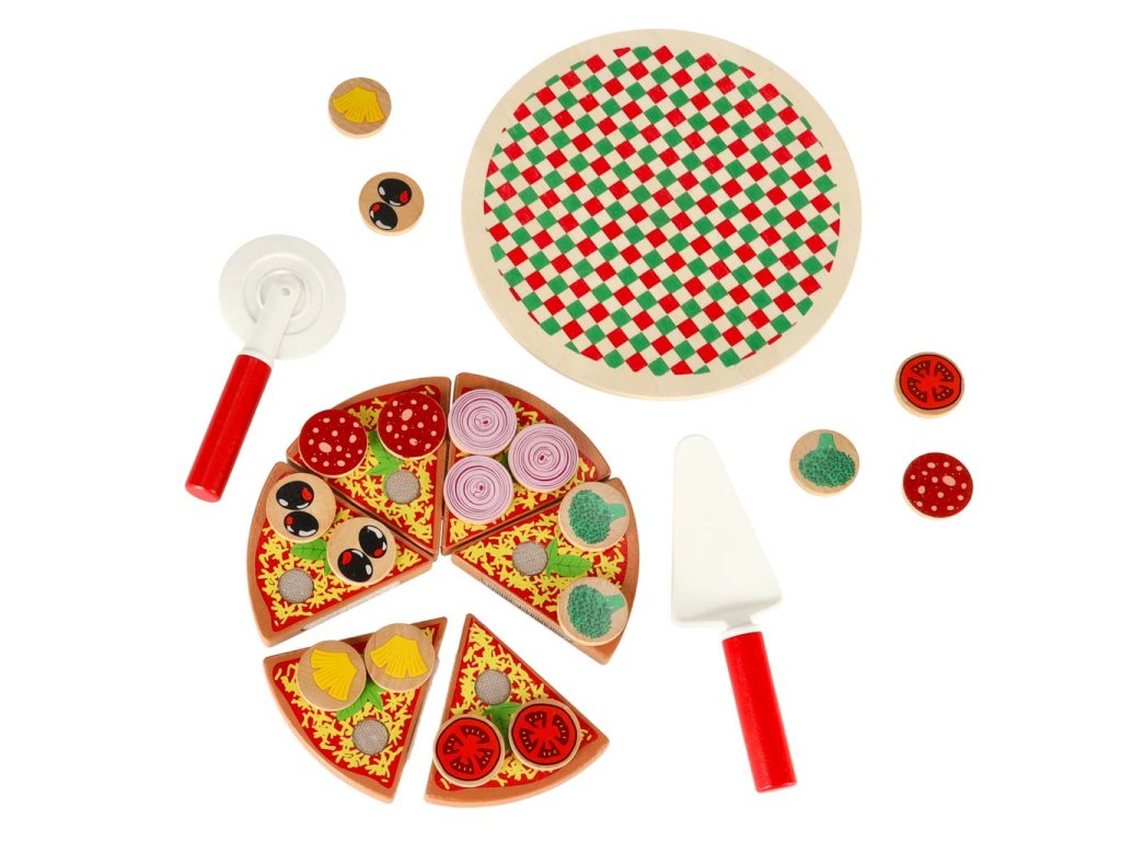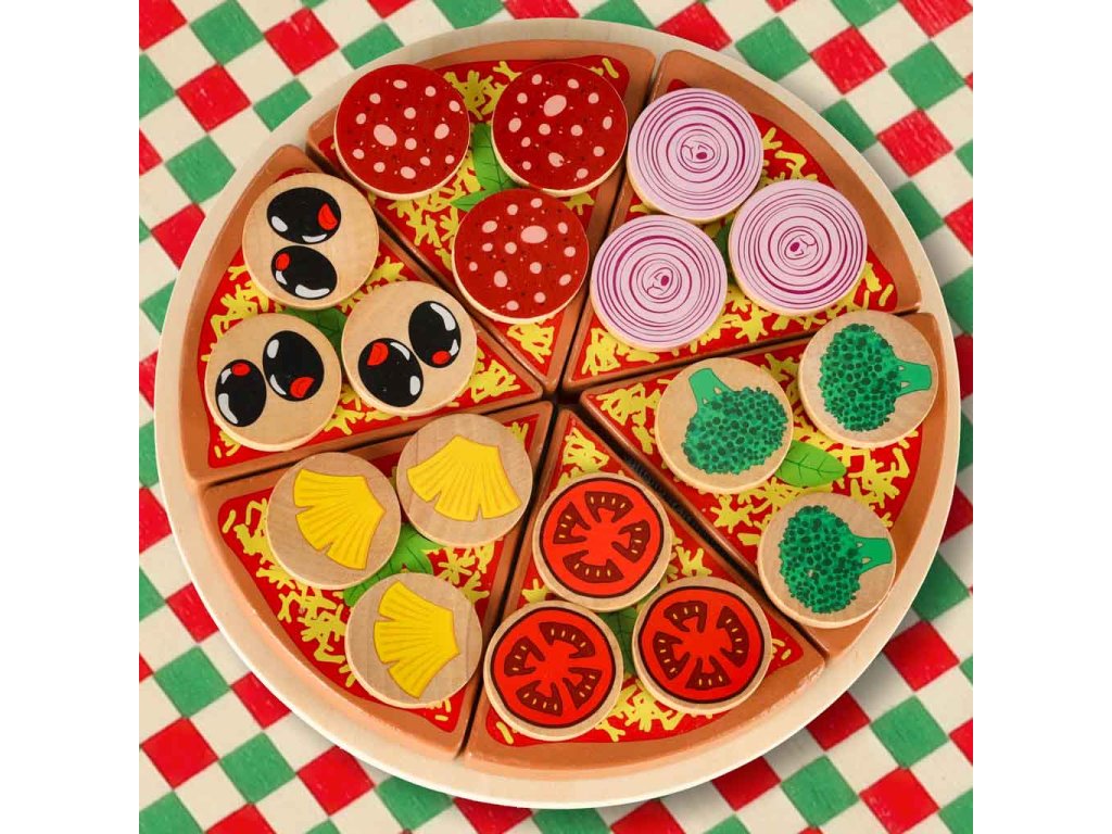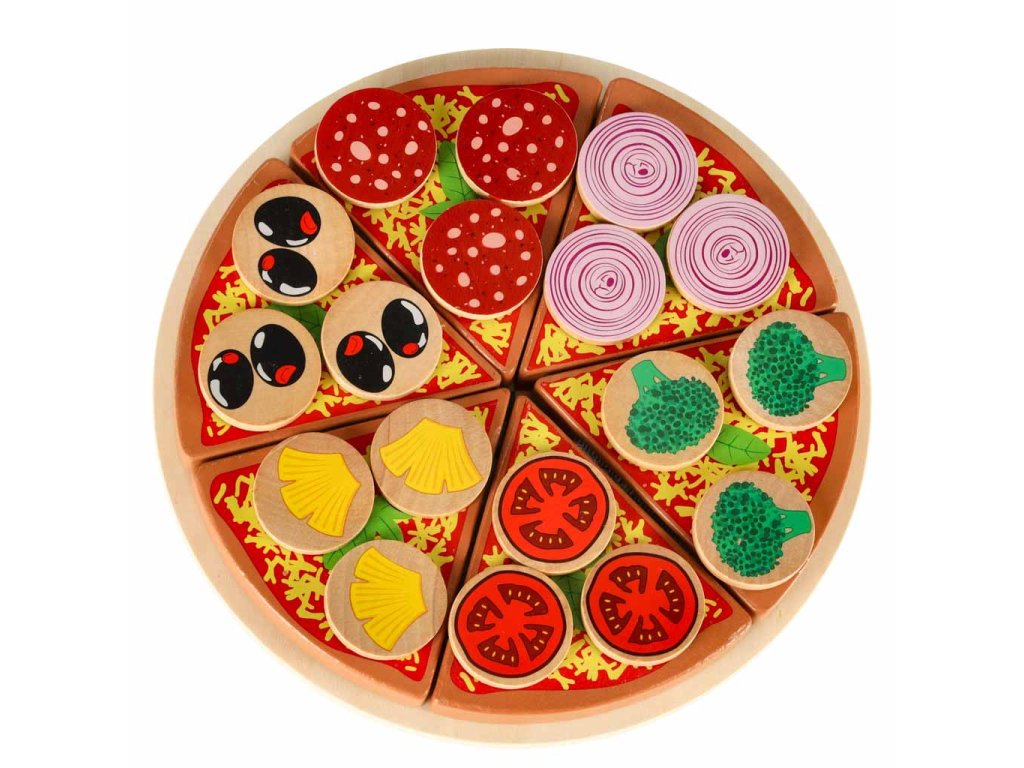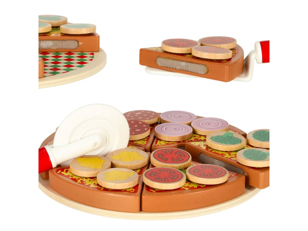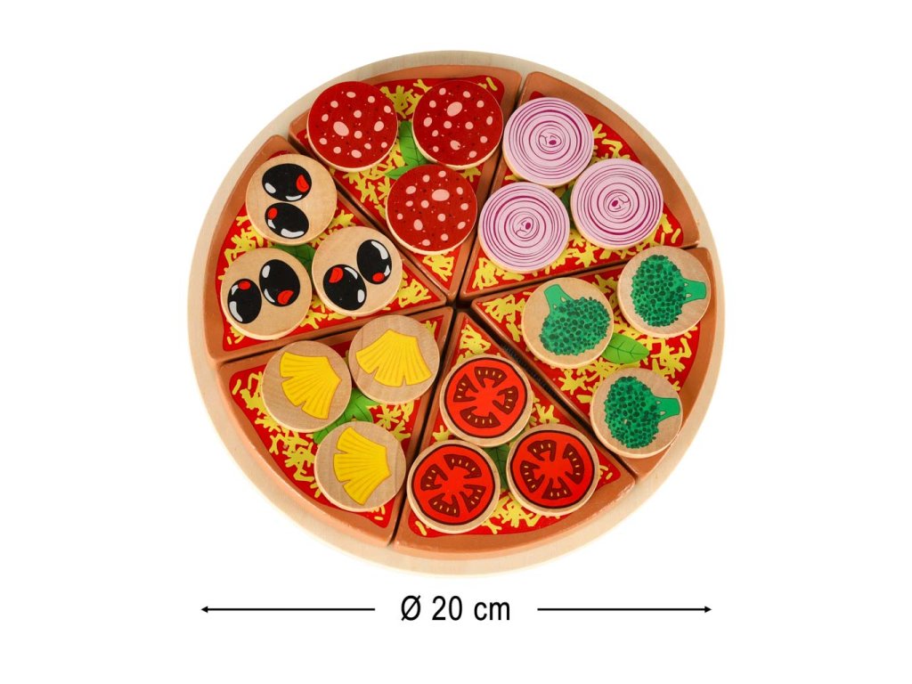 Jednotlivé prvky pizzy lze spojit pomocí suchých zipů, které jsou součástí balení.