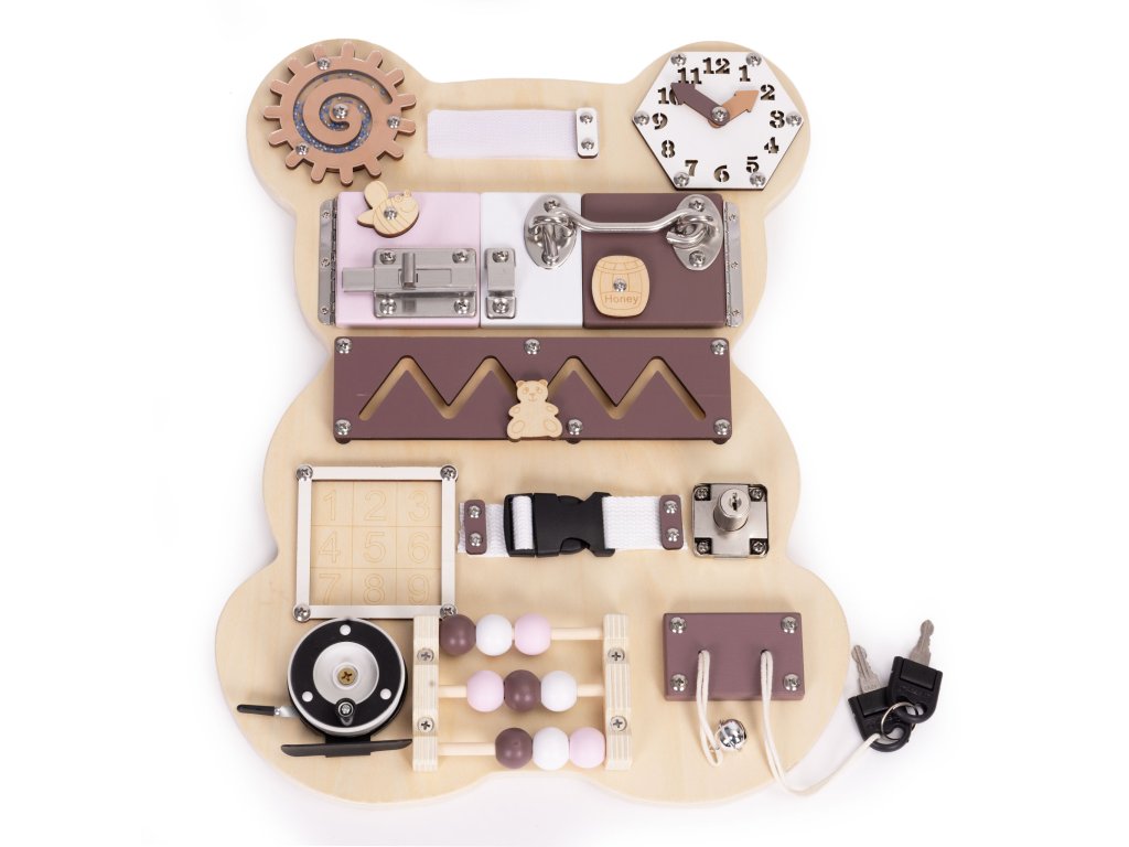 Predstavte si, že vaše dieťa môže otvoriť zámok s kľúčom , otočte prevodovka a učí sa hodiny na pohyblivé hodinky - a zároveň sa baviť! Drevená manipulačná doska v tvare rozkošného medvedíka nie je len hračkou, ale aj komplexný nástroj na podporu rozvoja . Prostredníctvom rôznych textúr a mechanizmov sa deti učia princípy akcie a reakcie množstvo funkcií a vlastností hry zaručuje dlhé hodiny sústredenia. Robustná konštrukcia z dreva a kovu zaručuje odolnosť a množstvo funkcií zaručuje dlhé hodiny sústredenia. Urobte si hru inteligentnou - vyberte si manipulačnú dosku a pozrite sa, ako sa vaše dieťa vyvíja!