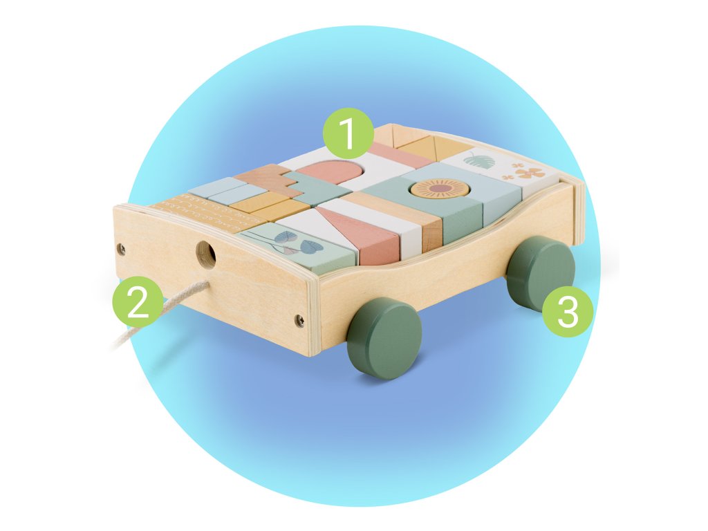 ✅ Umožňuje dítěti hračku snadno přemisťovat, čímž podporuje aktivní hru a rozvíjí dovednosti chůze.