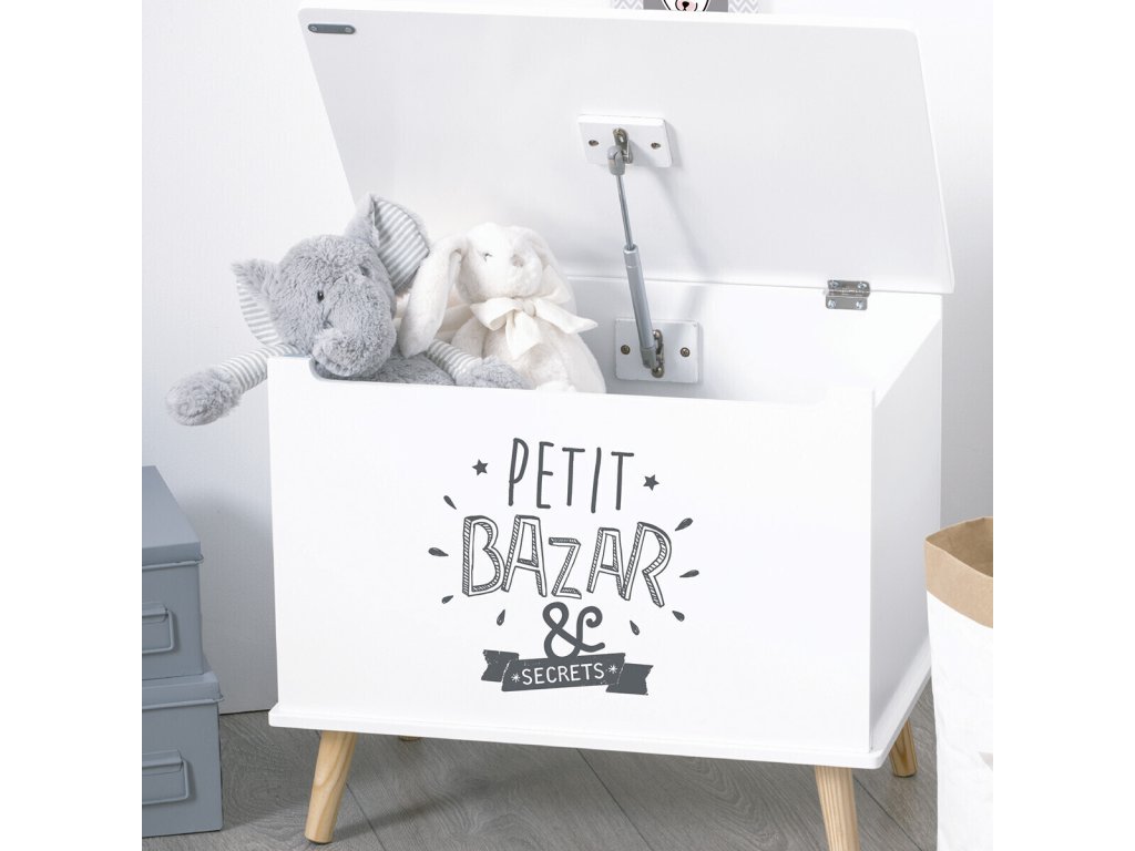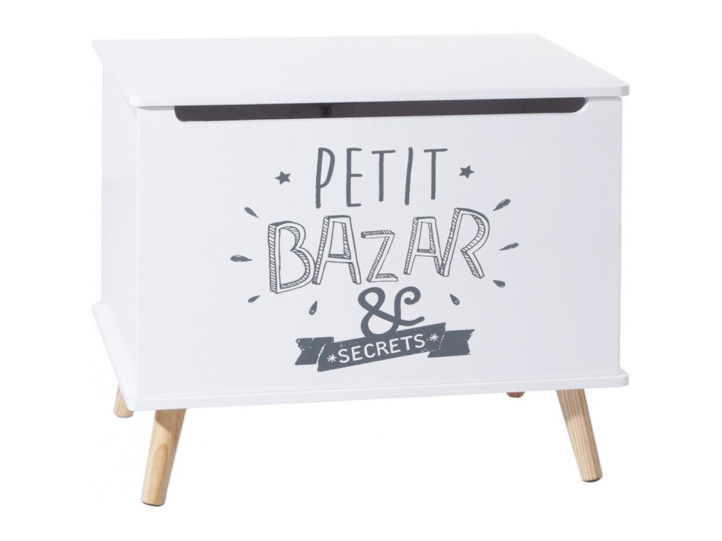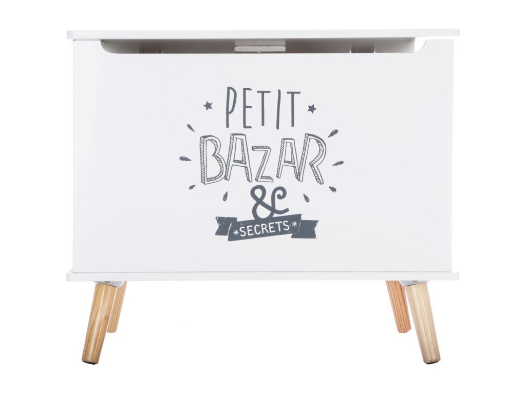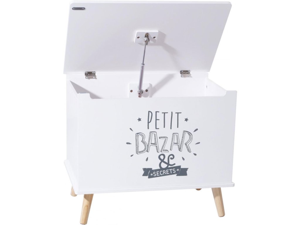 Praktická a elegantní truhla do dětského pokoje. Děti si do něj mohou uložit své oblíbené věci, hračky, suvenýry i knihy. Má pevnou konstrukci s veselým písmem a čtyřmi nožičkamiz přírodní borovice. Má vestavěný píst, který udržuje truhlu otevřenou pro zajištění, a je vybavenmagnetický uzávěr.