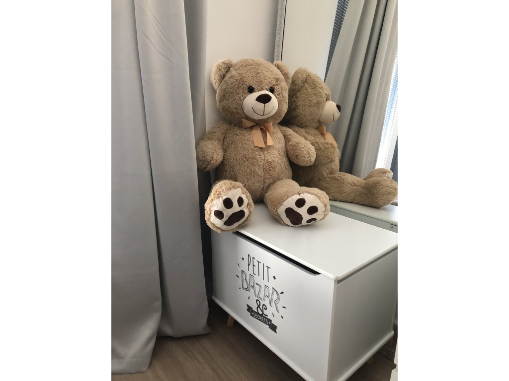 Detail, což se nám líbí: velmi moderní šikmá základna. Hluboká a moderní truhla. Tato velkokapacitní dřevěná truhla optimalizuje úložné prostory v dětském pokoji, aniž by zaplnila prostor. Z naší dětské truhly budou mít radost nejen děti, ale i jejich rodiče.