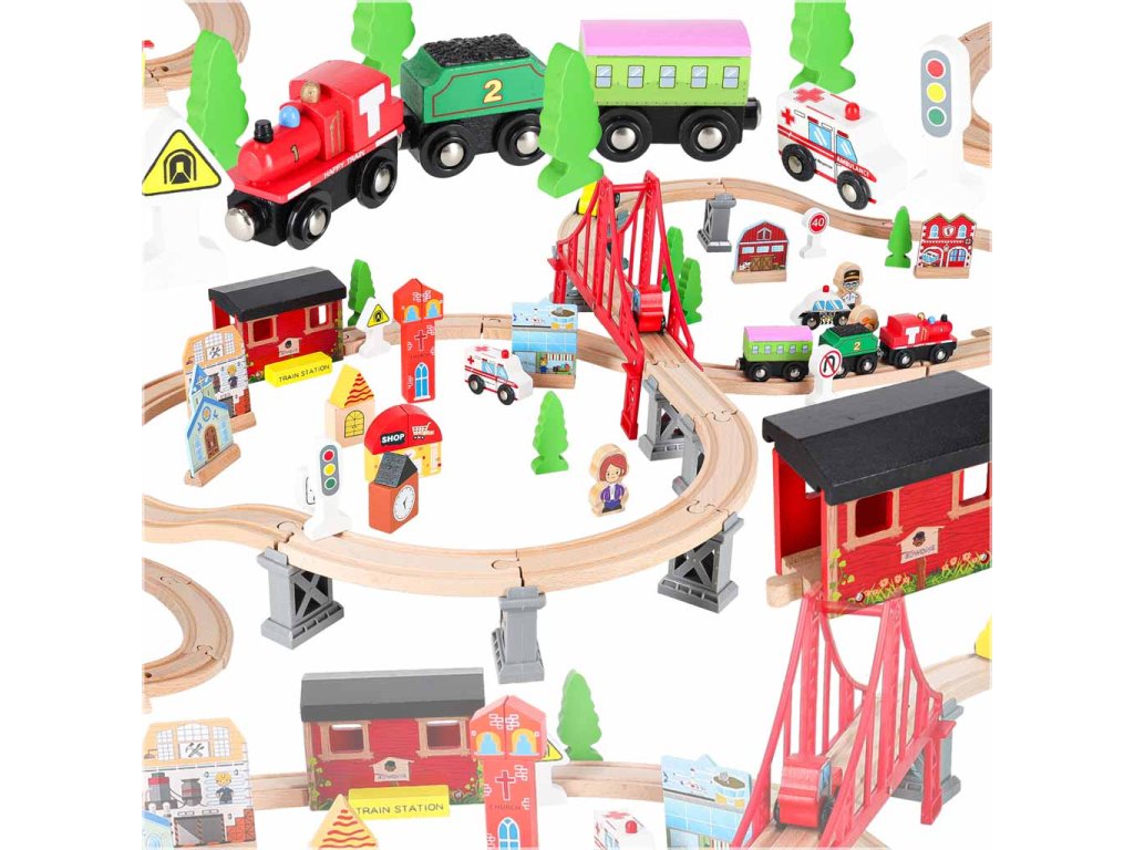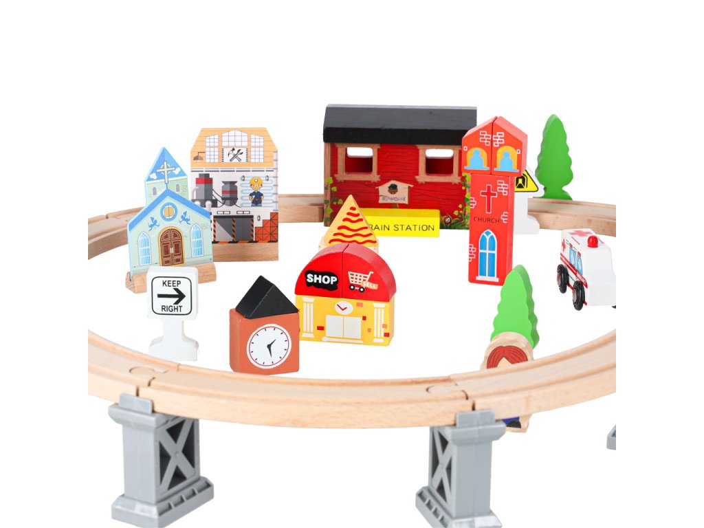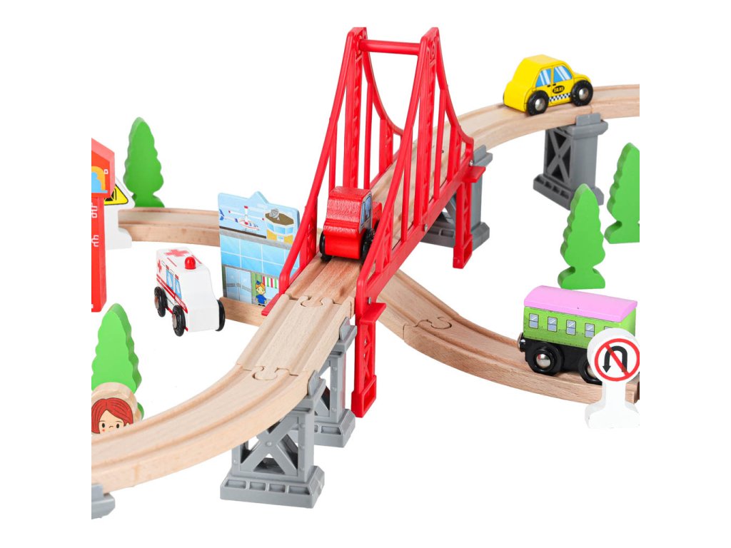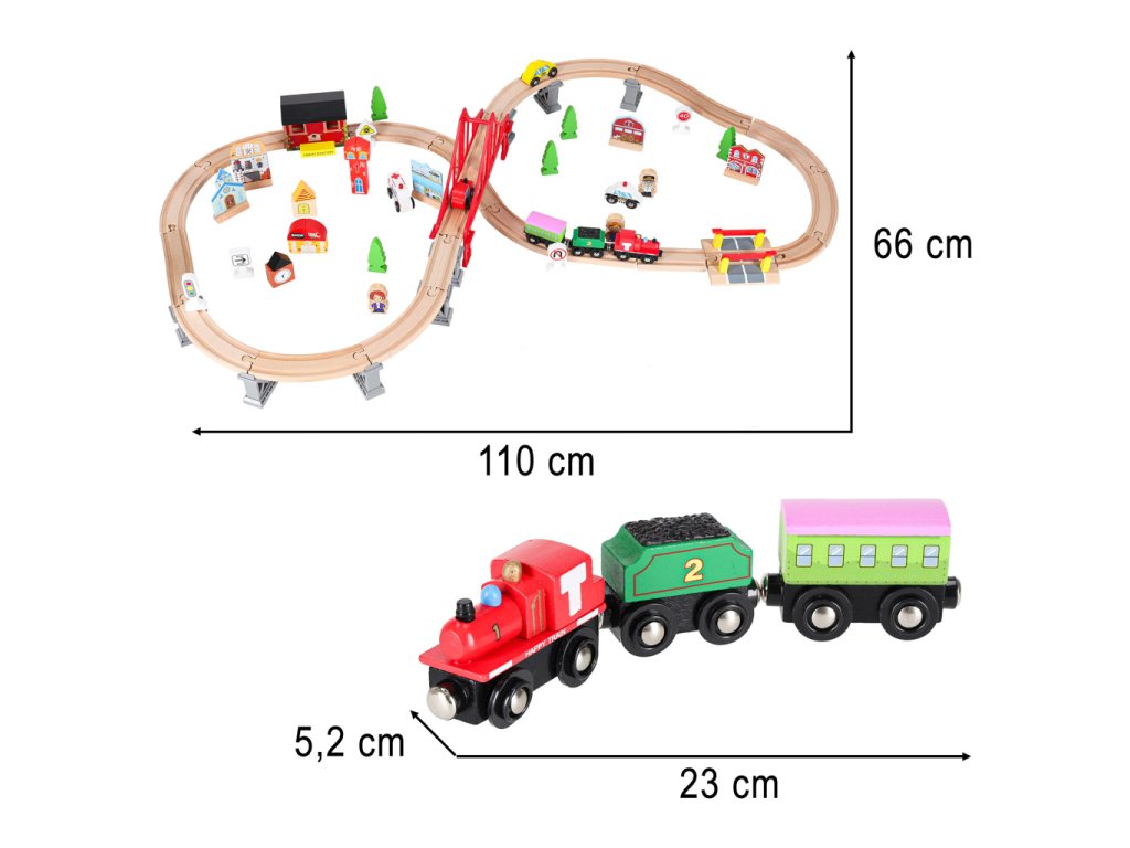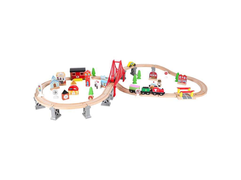 Dřevěná vláčkodráha je pro nejmenší opravdovým zážitkem! Barevné dílky k vytvoření neobyčejných krajin. Rozsáhlá sada - až 70 prvků! - poskytuje prakticky neomezené tvůrčí možnosti.