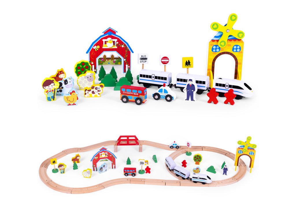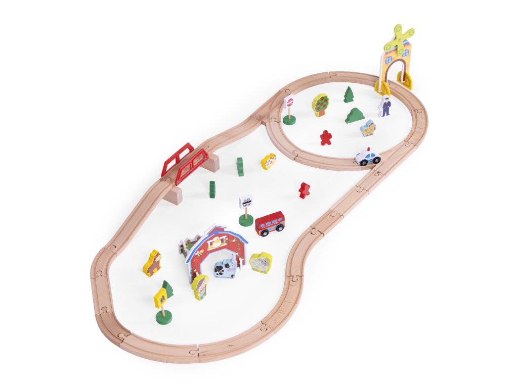 Dřevěná vláčkodráha na baterie Farma 53 kusů ECOTOYS