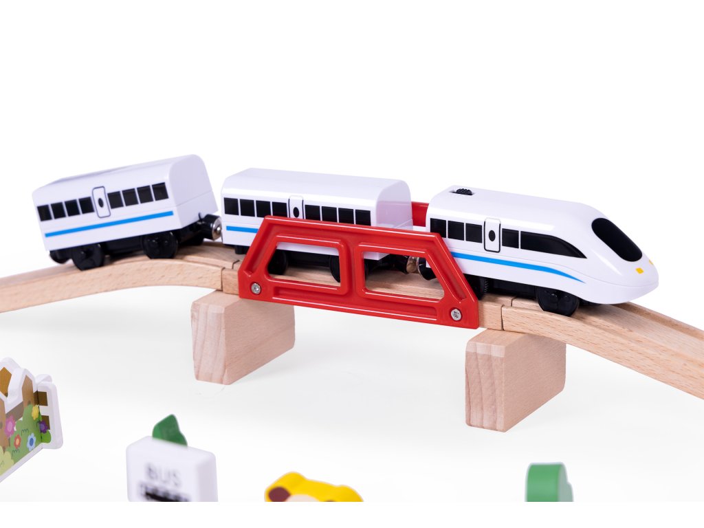 Tento jedinečný dřevěný vláček je perfektní kombinace tradice a modernosti, nabízí nejen klasické prvky, jako jsou postavy a dopravní značky, ale také inovativní řešení, jako je např bateriový vlak.