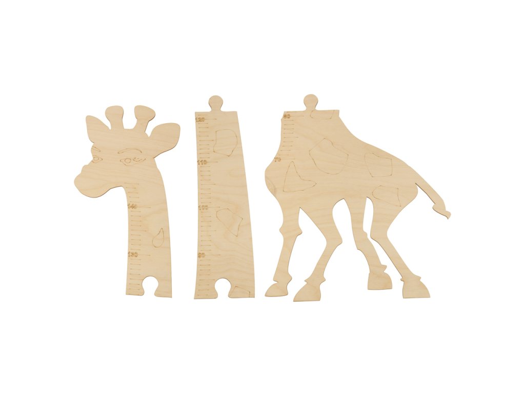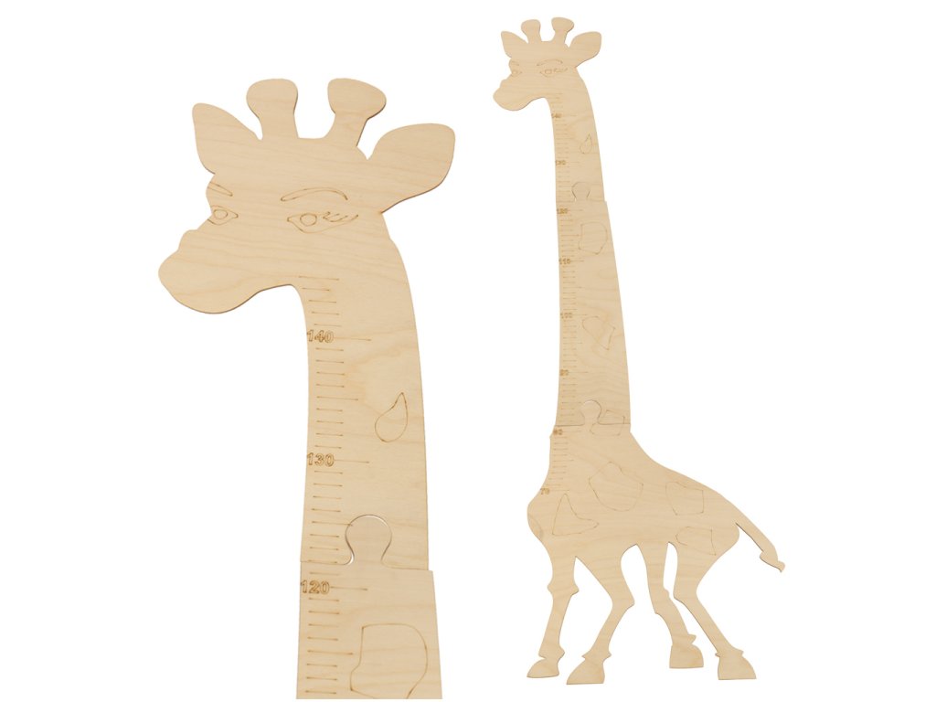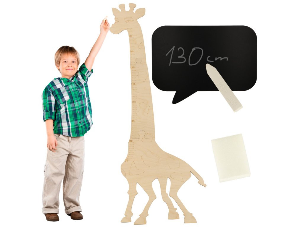 Dřevěná žirafa růstová míra 125 cm přírodní dřevo + deska 32 x 44 cm