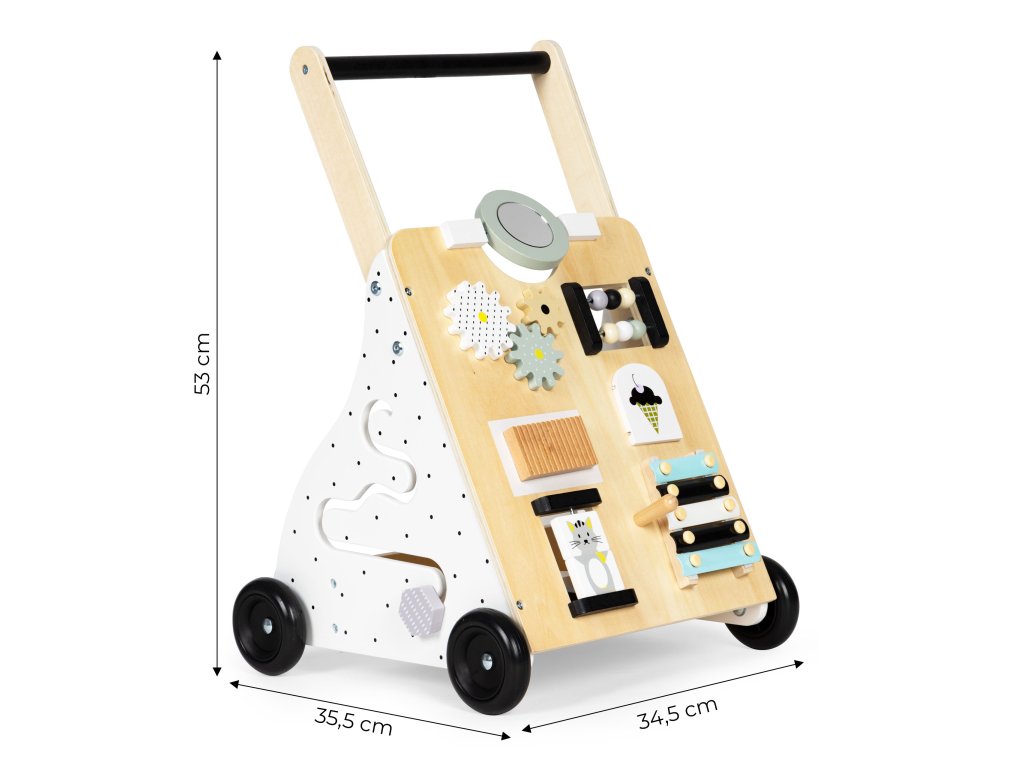 Pomáhá udržovat rovnováhu, procvičuje motoriku a umožňuje batolatům získat sebedůvěru v samostatné části. Je vybaveno protiskluzovými kolečky, takže je pro děti zcela bezpečné.