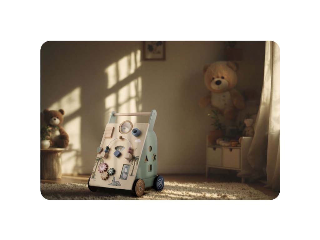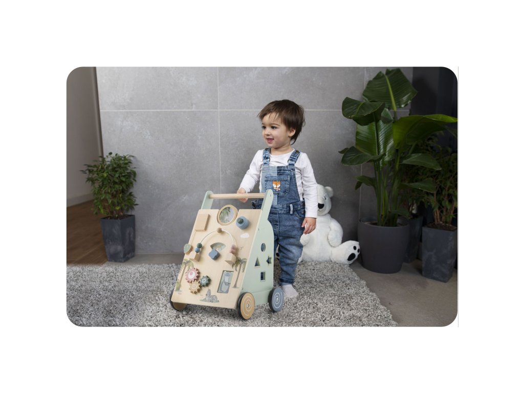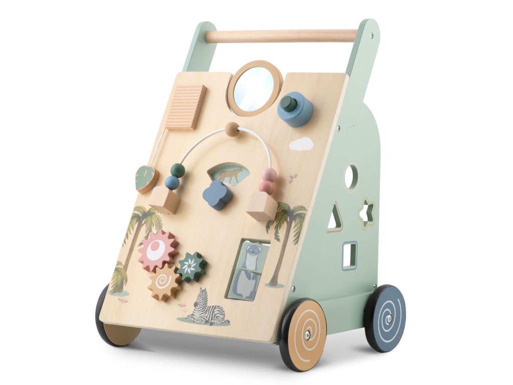umožňuje dieťaťu hračku ľahko premiestňovať, čím podporuje aktívnu hru a rozvoj schopnosti chodiť.
