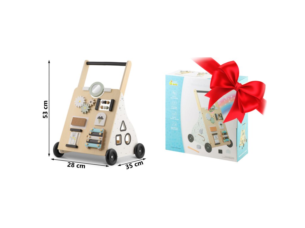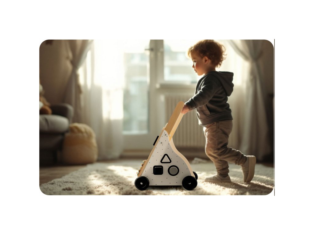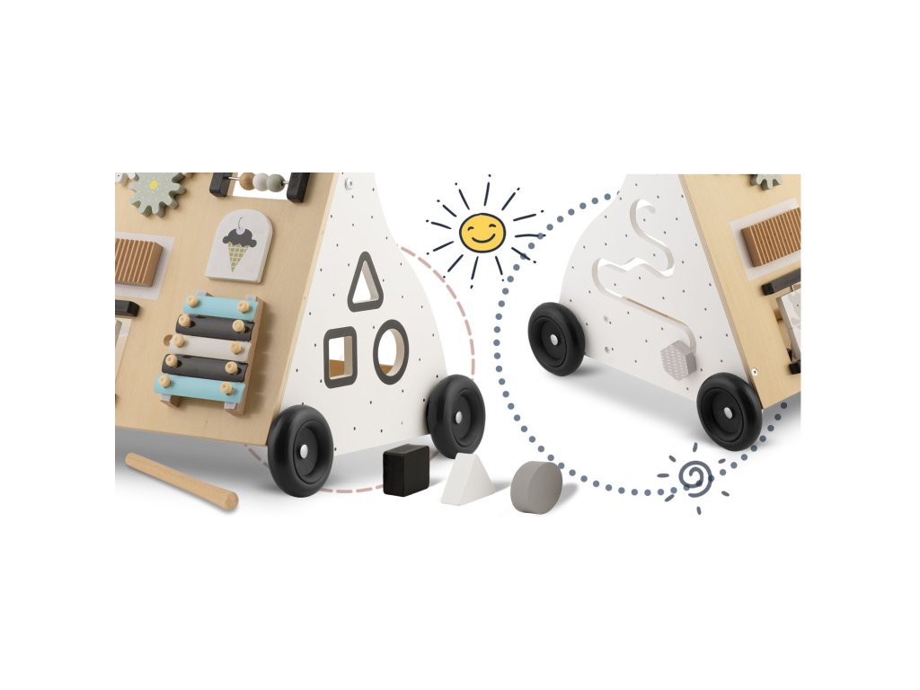 - umožňuje, aby dítě hračku snadno přemisťovalo, a podporuje tak aktivní hru arozvoj schopnosti chůze.