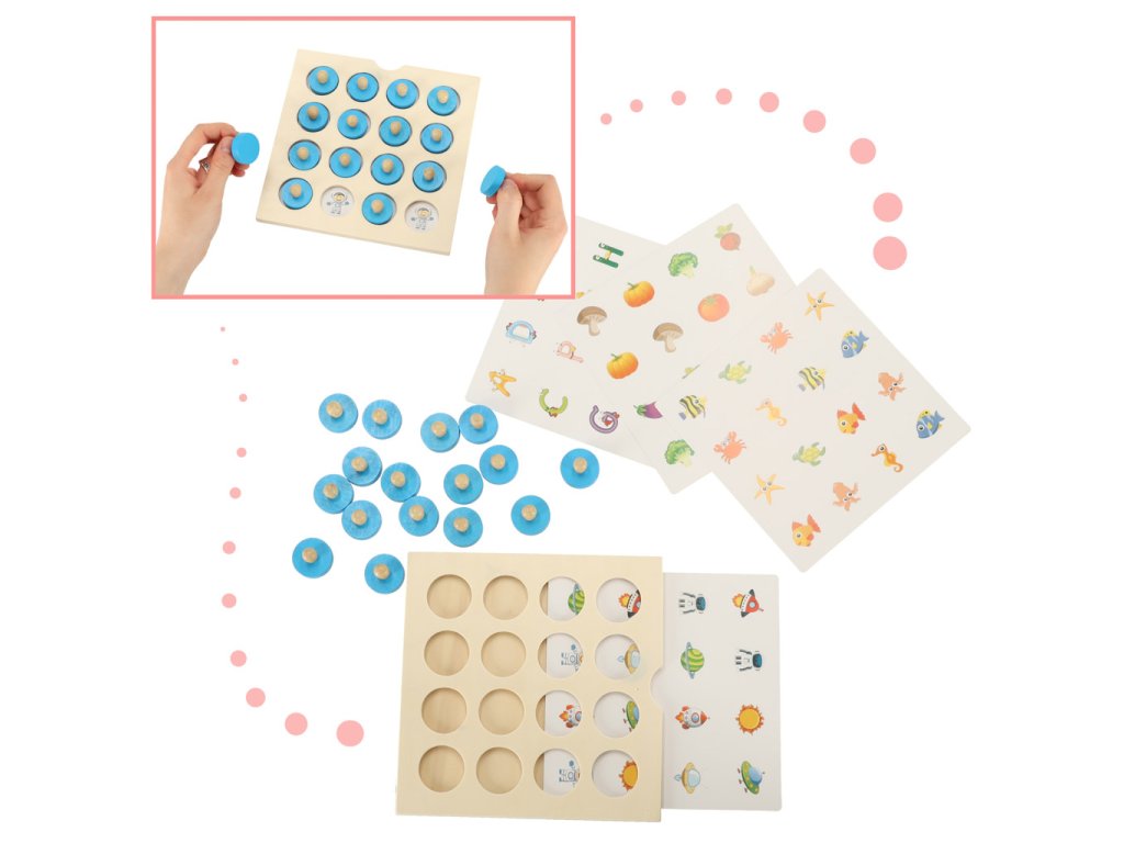 DŘEVĚNÁ STOLNÍ HRA PUZZLE MEMORY + 4 KARTY