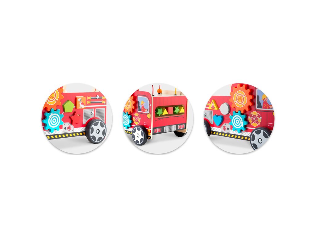 Výrazné farby stimulujú zrak dieťaťa, uľahčujú učenie farieb a podporujú rozvoj zrakového vnímania. Použité bezpečné farby a odolné drevo navyše zaručujú, že hračka je bezpečná aj pre najmenších používateľov a vydrží dlhé roky.