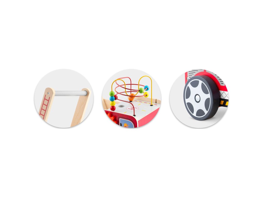- Drevená dráha kombinuje vzdelávacie prvky s fyzickou aktivitou a podnecuje deti k tvorivému mysleniu.