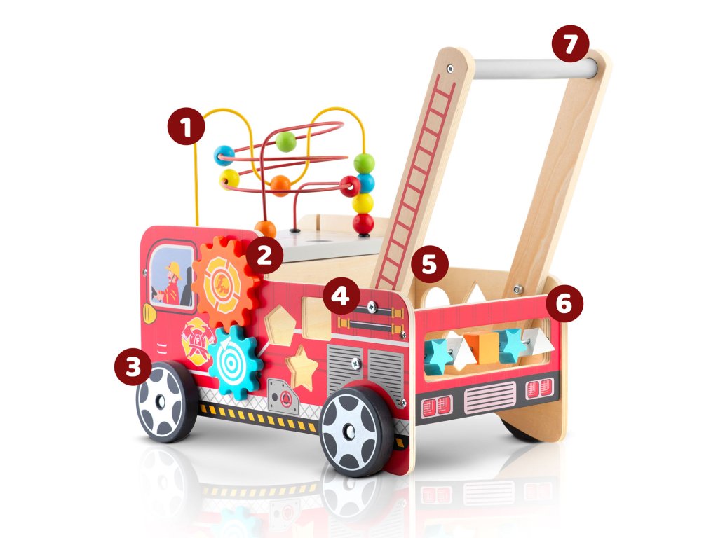 - umožňuje dieťaťu riadiť hračku, čím podporuje aktívnu hru a rozvoj schopnosti chodiť