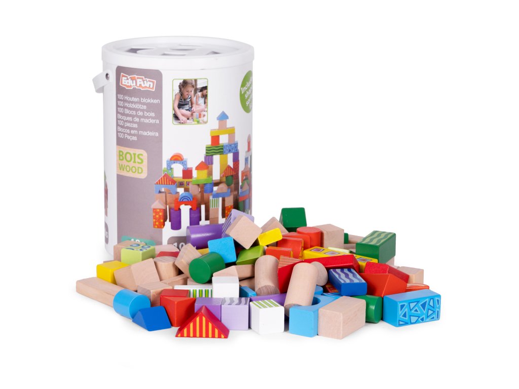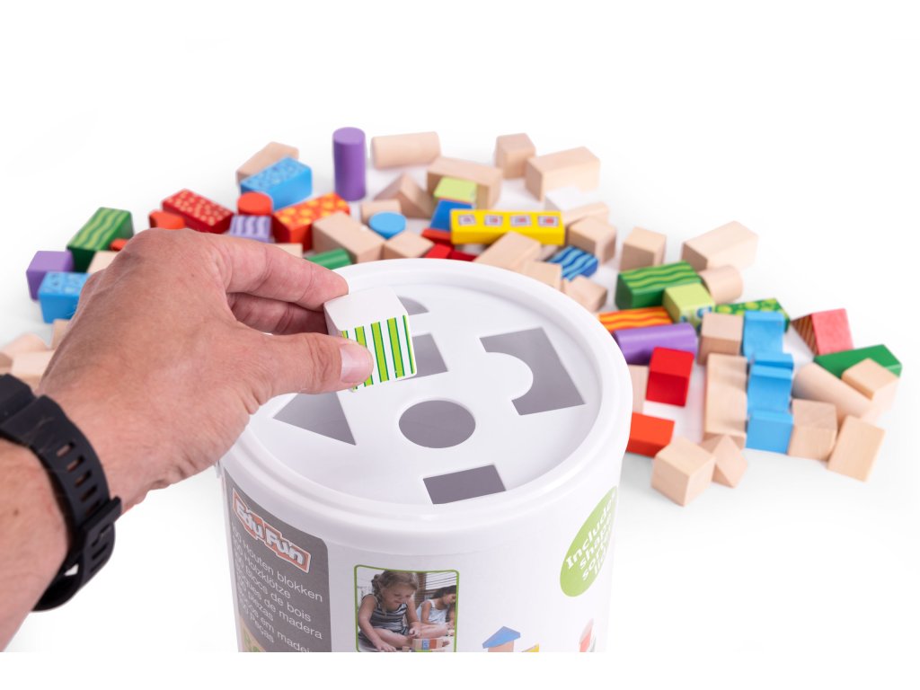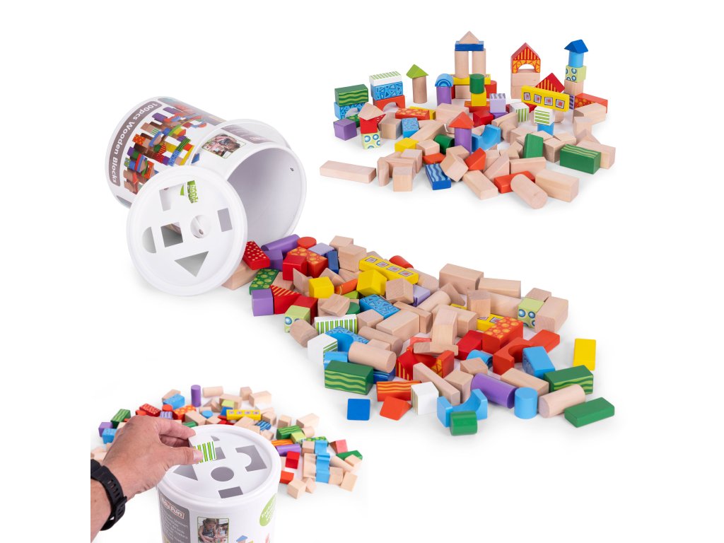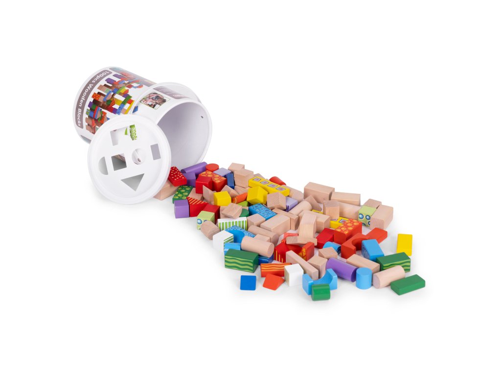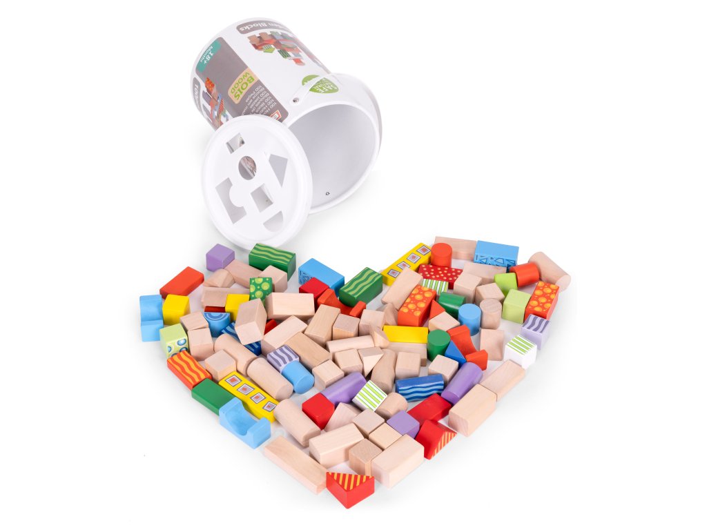 Dřevěné kostky pro děti 100 ks třídicí kbelík ECOTOYS