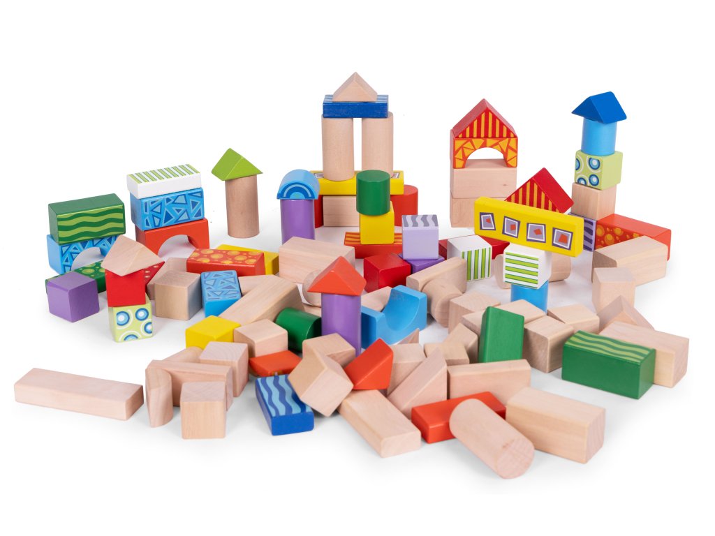 Všetky prvky boli natreté bezpečné pre deti i šetrné k životnému prostrediu farby, takže sa nemusíte obávať o zdravie svojho dieťatka. Žiadne ostré hrany , príjemný na dotyk štruktúra dreva a rôzne, farebné tvary to sú vlastnosti, pre ktoré si naše bloky zamiluje každé dieťa.