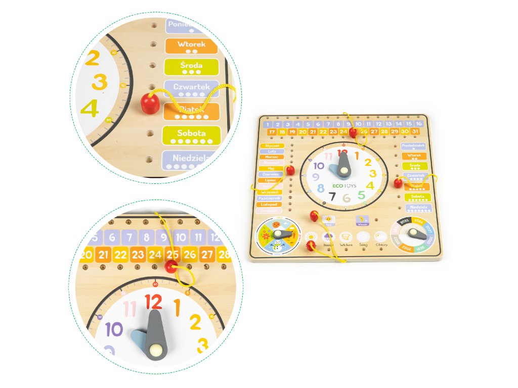 Dřevěné manipulační deskové kalendářní hodiny ECOTOYS