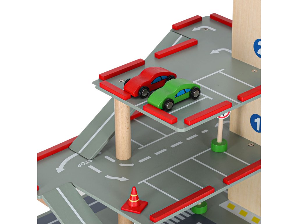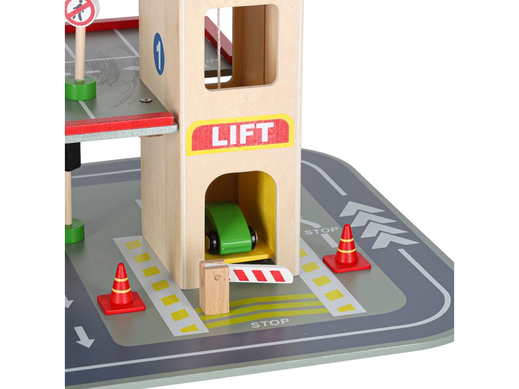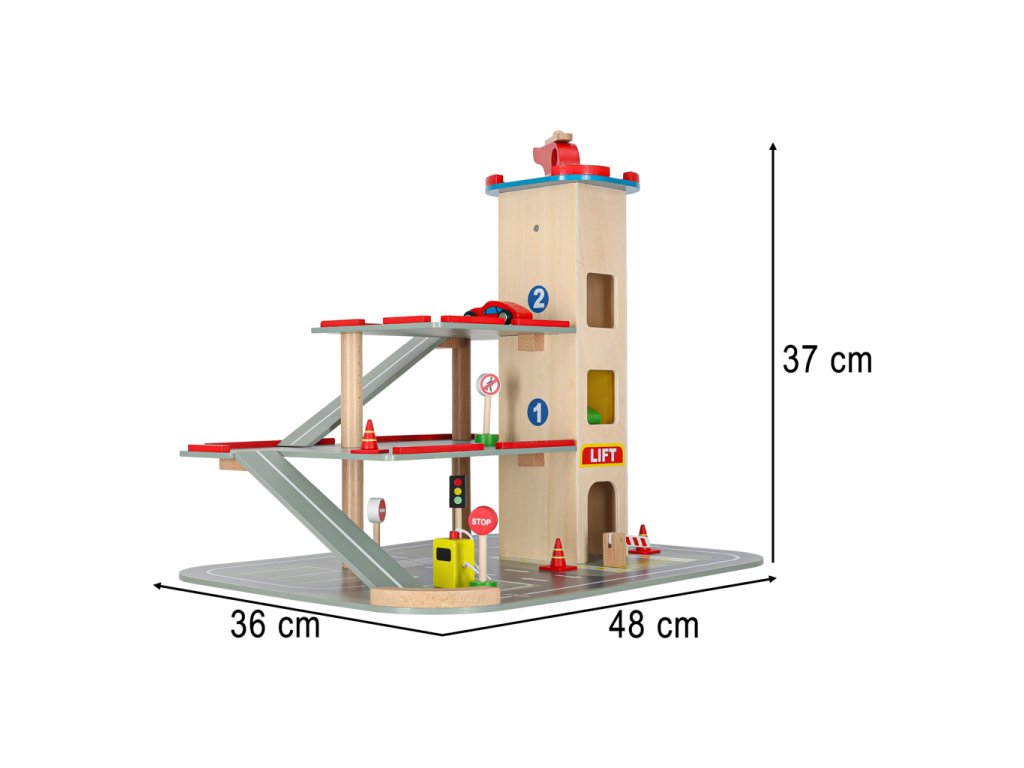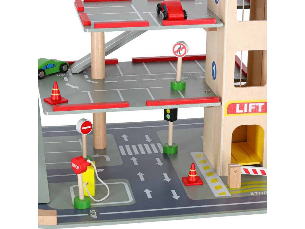 Krásná dřevěná městská garáž má čtyři úrovně ! První tři jsou určeny pro autíčka - je zde místo pro dřevěná autíčka, která jsou součástí sady, i pro mnoho dalších vozidel pro vaše dítě. Do dalších úrovní se lze dostat výtahem!